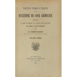 Trattato teorico e pratico della eccezione di cosa giudicata secondo il diritto romano e il codice civile italiano con accenni al diritto intermedio. Volume primo (unico pubblicato)