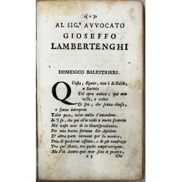 Opera completa e con una tavola raffigurante il poeta con il suo gatto. Contiene rime di vari autori tra le quali quelle dello stesso Balestrieri sia in italiano che in dialetto milanese