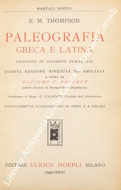 Paleografia greca e latina versione di Giuseppe Fumagalli. Prefazione di Msgr G. Galbiati