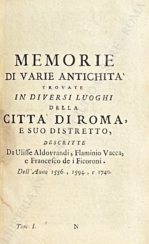 Roma antica distinta per regioni, secondo l'esempio di Sesto Rufo, Vittore, e Nardini; Ornata di Rami delle più celebri Fabbriche antiche diligentemente intagliate; Coll'aggiunta dello stato di Roma nel secolo XII., e delle memorie di varie antichità trovate in diversi luoghi della Città di Roma scritte da Ulisse Aldovrandi, Flaminio Vacca, Francesco de' Ficoroni, Pietro Santi Bartoli, ed altri fino all'anno MDCCXLI