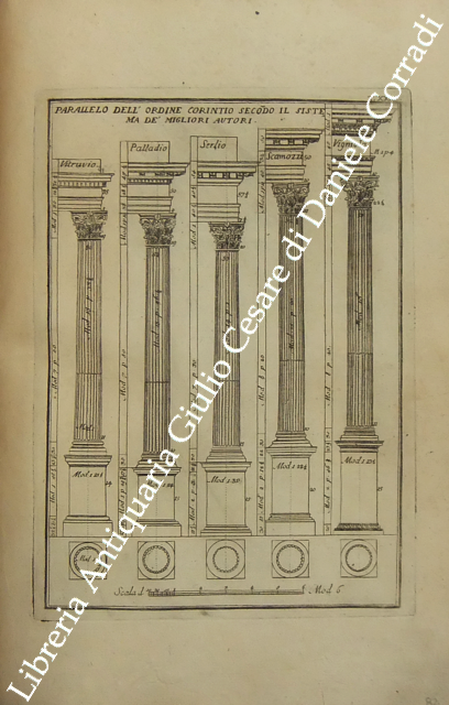 Illustrazione a piena pagina raffigurante gli ordini architettonici incisa da Zaballi a inizio opera.