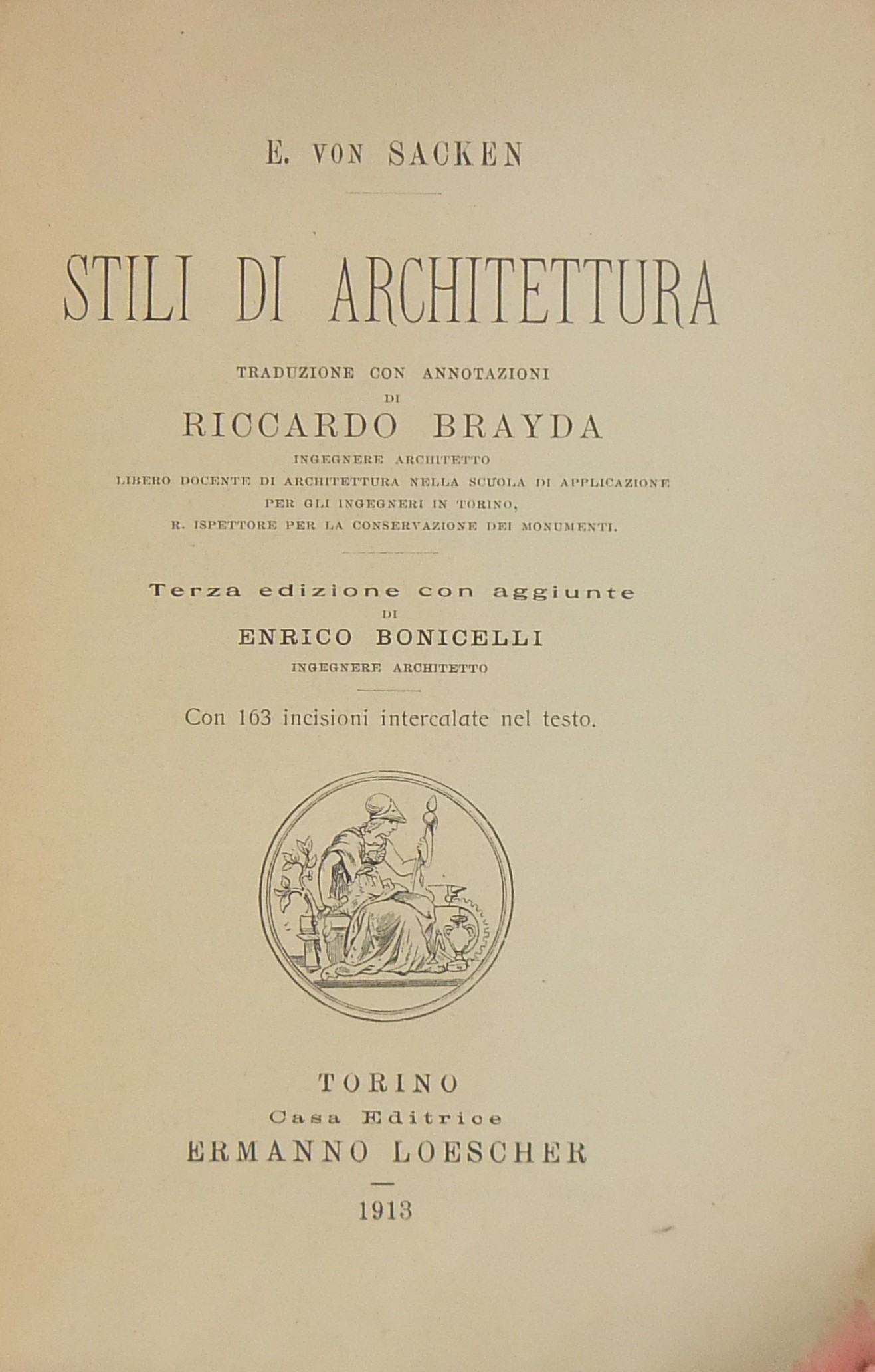 Stili di architettura. Traduzione con annotazioni di Riccardo Brayda.. Con 163 incisioni nel testo