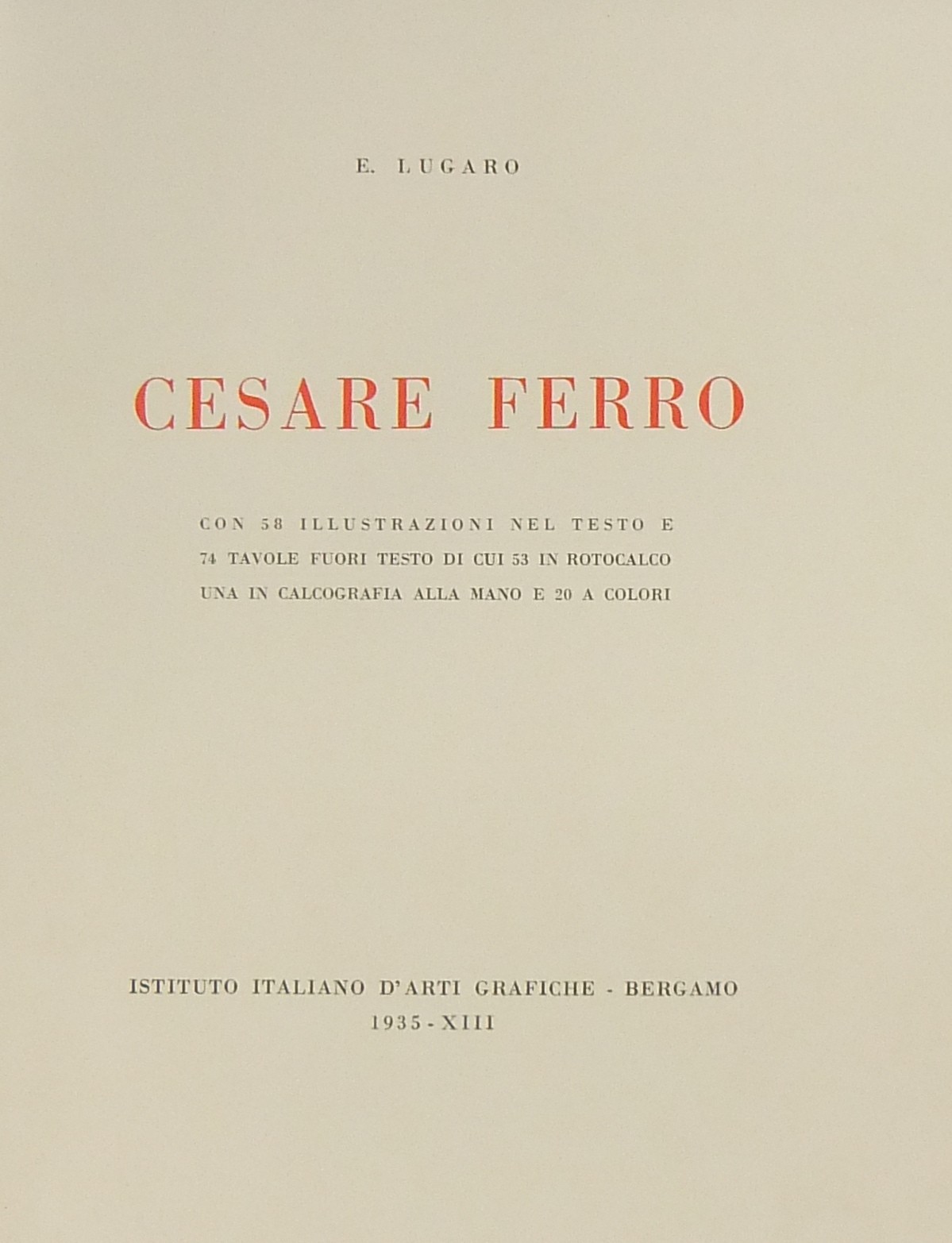Cesare Ferro. Con 58 illustrazioni nel testo e 74 tavole fuori testo di cui 53 in rotocalco una in calcografia alla mano e 20 a colori