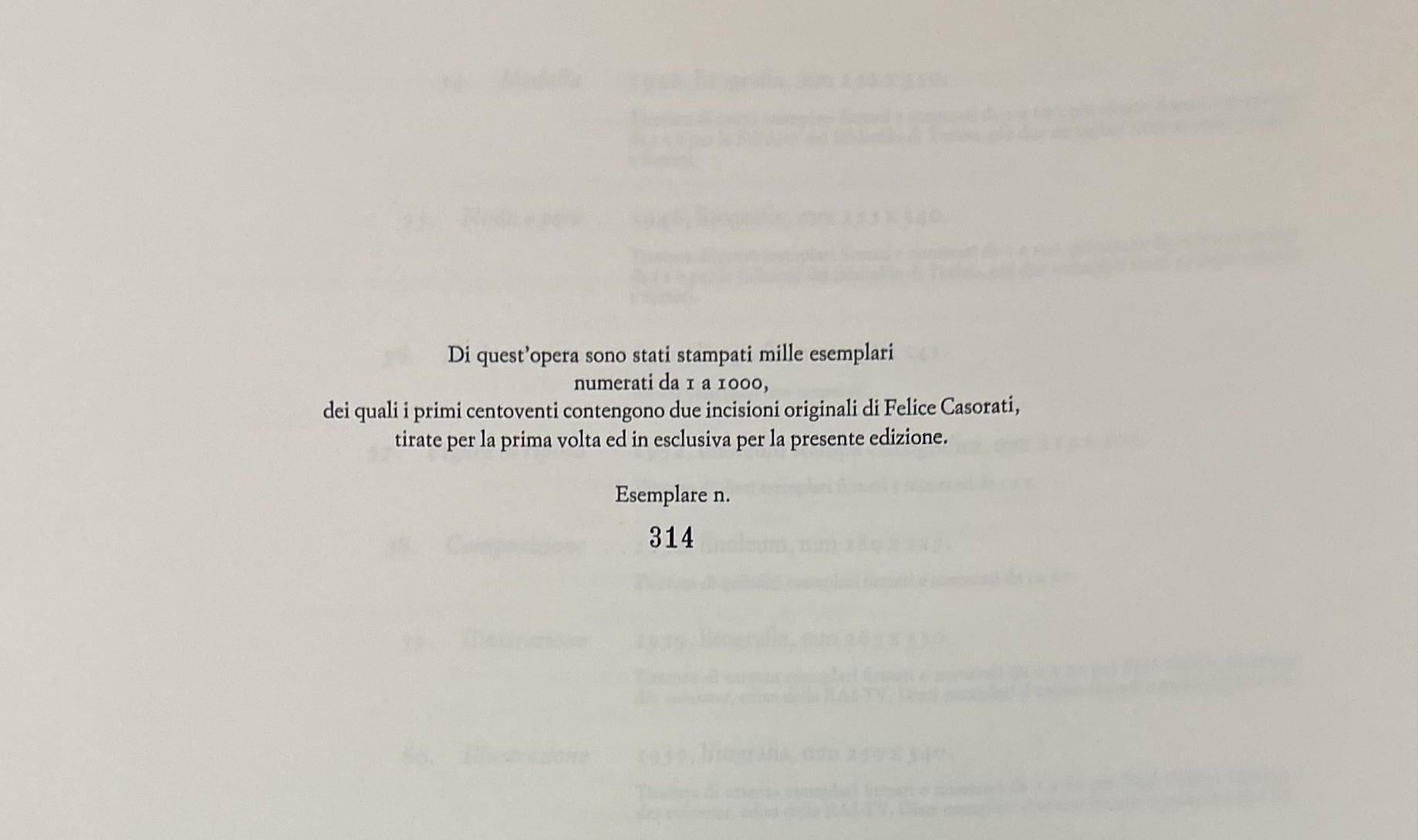 Opera a tiratura limitata di 1000 copie numerate. Nostro esmplare n. 314