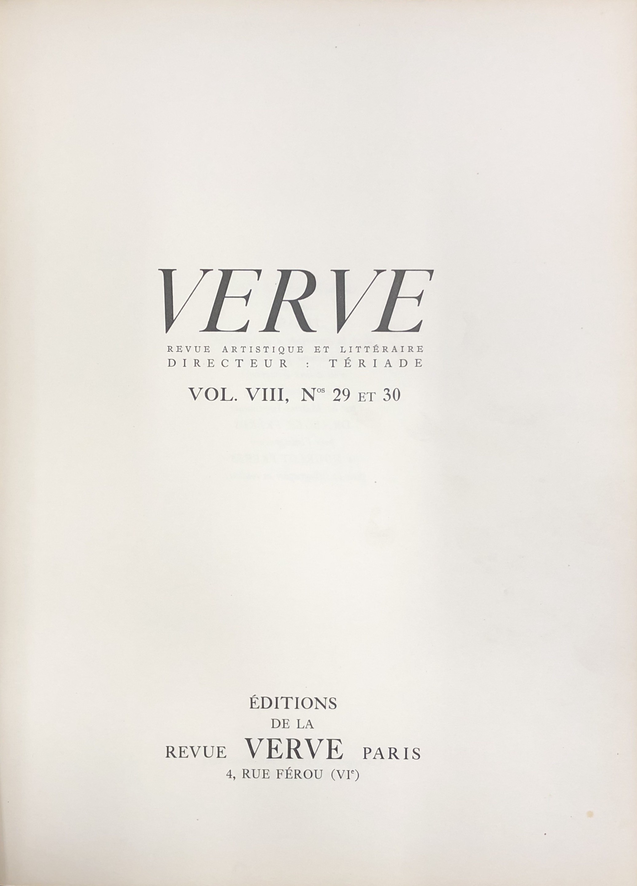 Verve. Revue artistique et littéraire. Directeur Teriade. Vol. VIII nn. 29 et 30. Suite de 180 dessins de Picasso