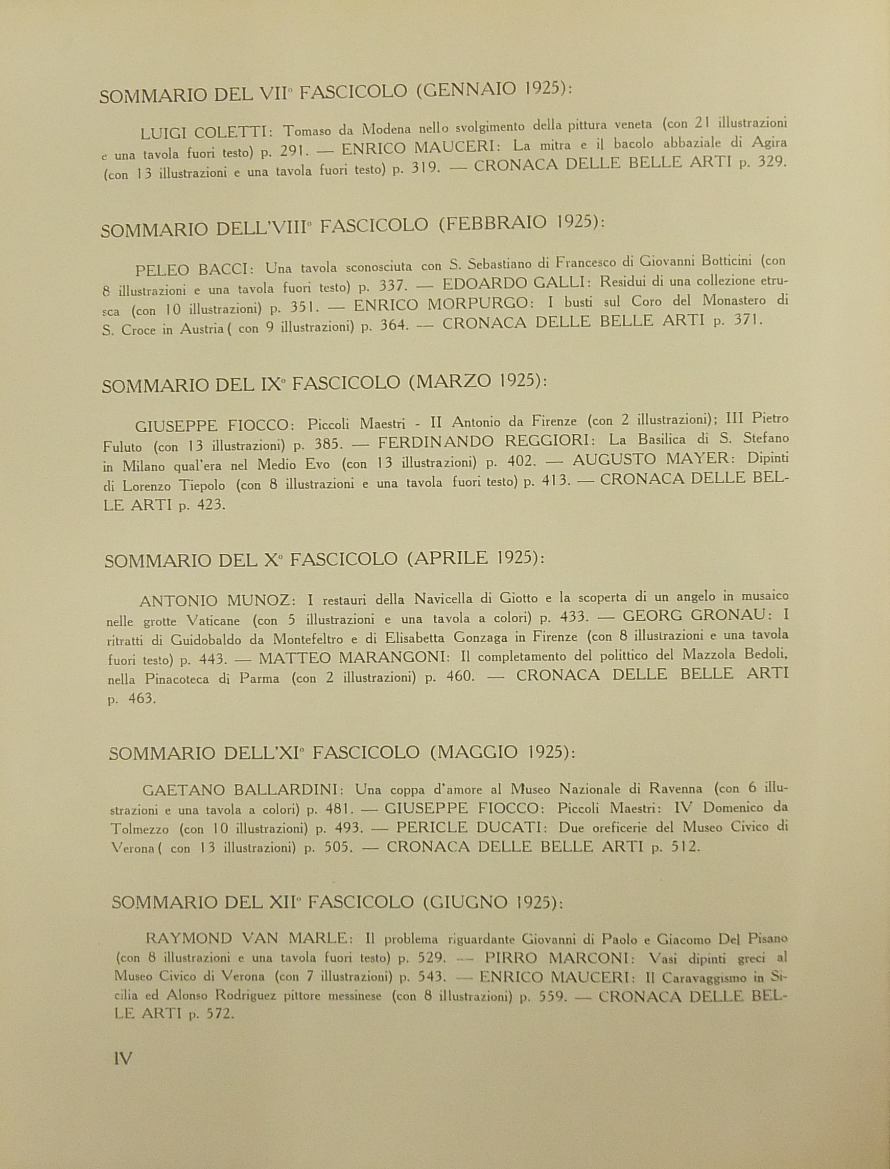 Bollettino d'arte del Ministero della Pubblica Istruzione. Rivista dei Musei gallerie e monumenti d'Italia. Diretta da Arduino Colasanti. Anno IV - Vol. I e II - 1924-1925