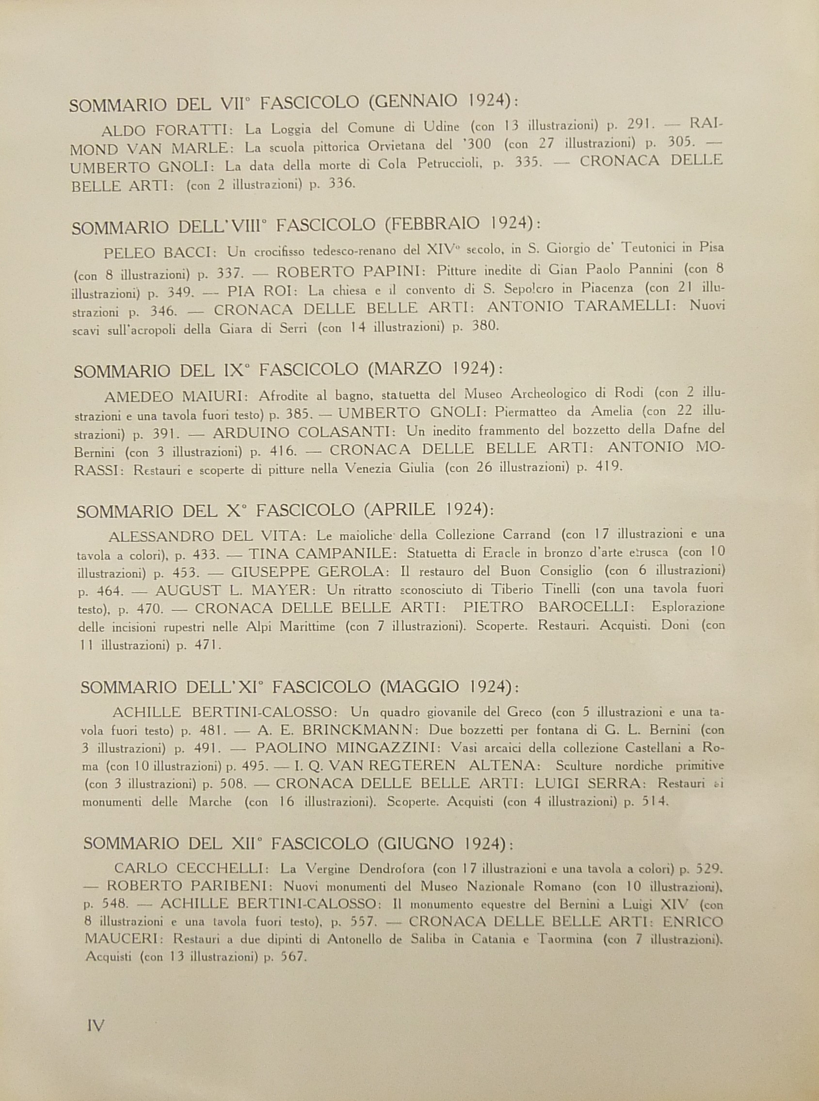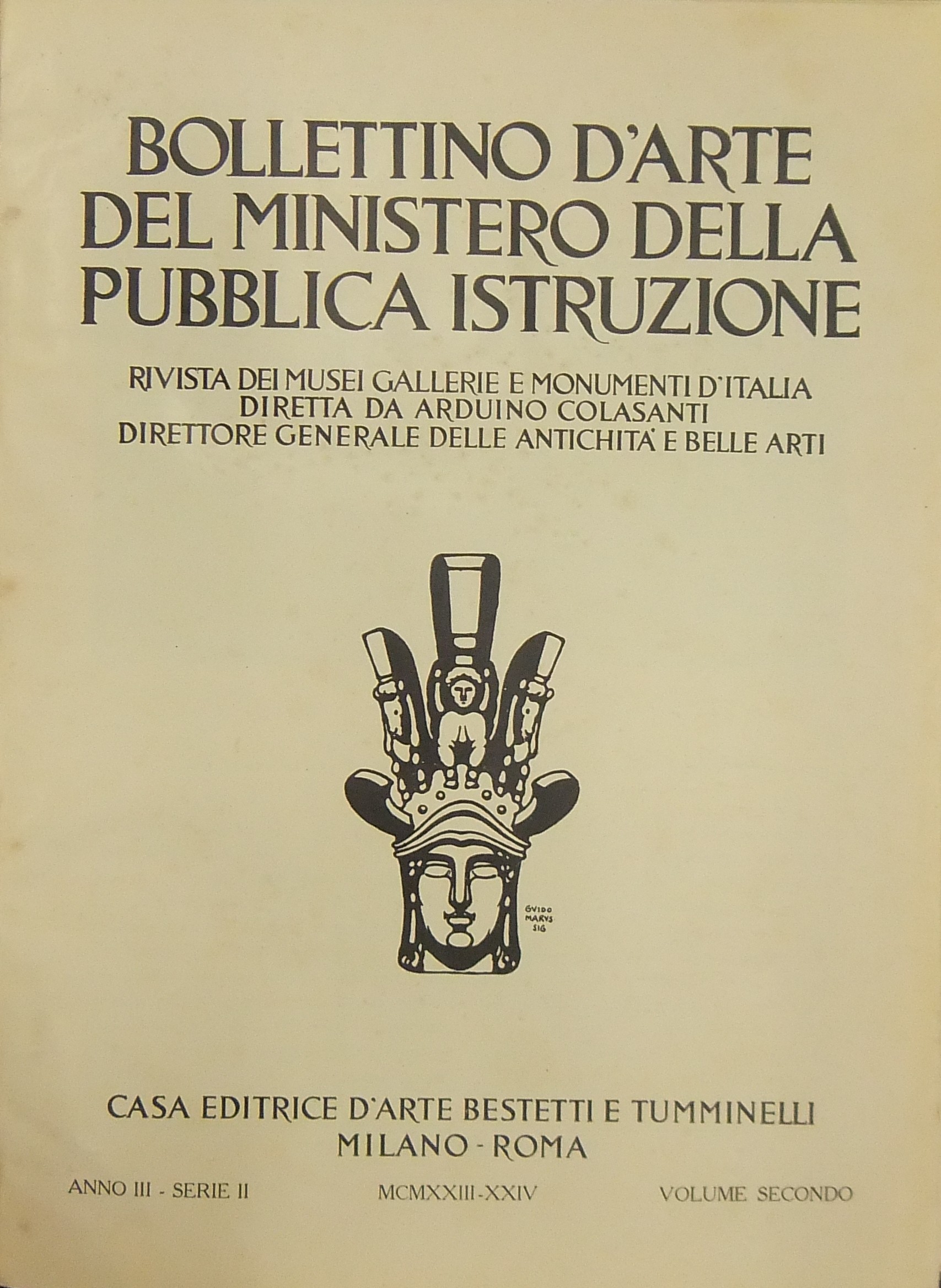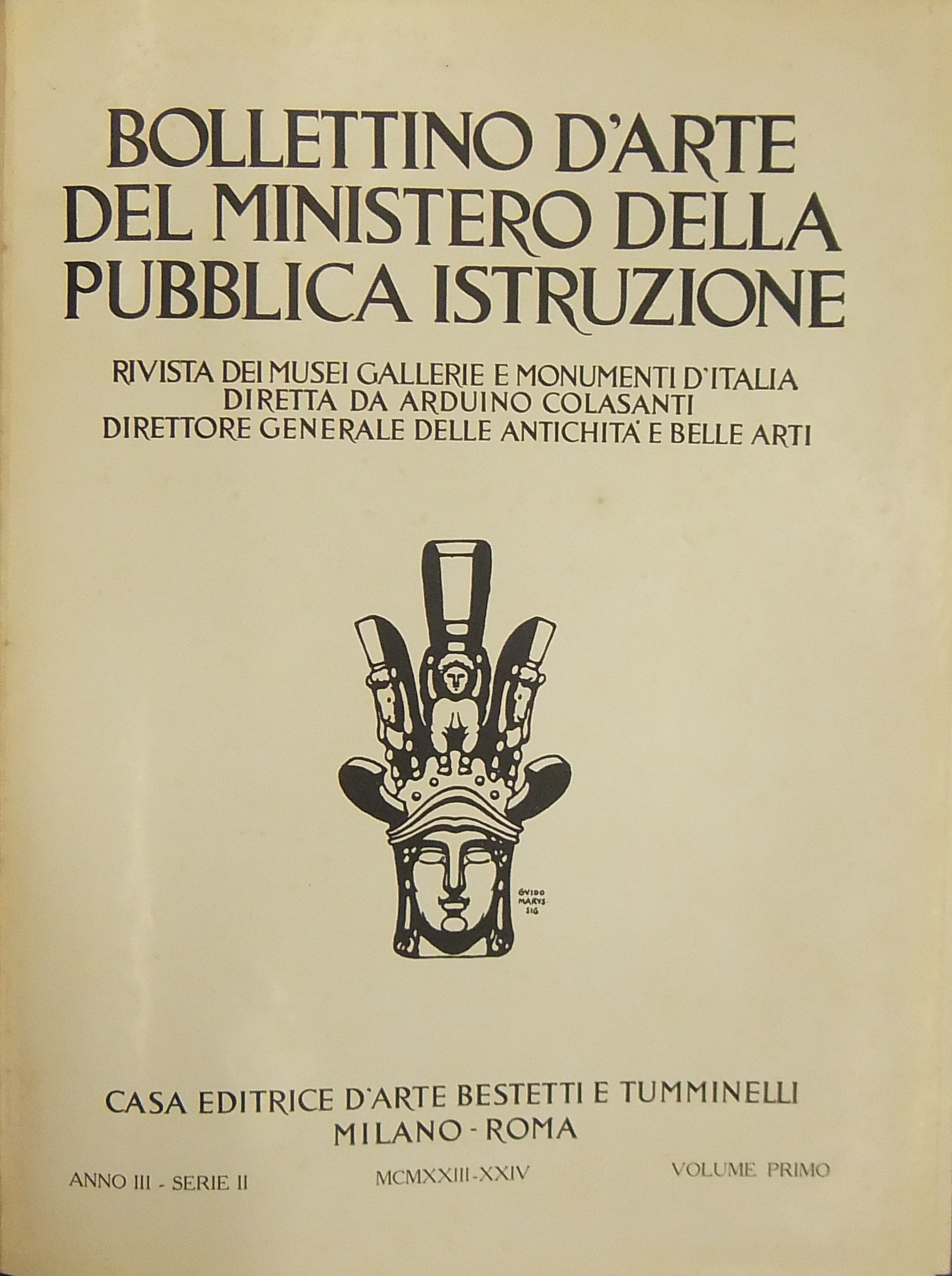 Bollettino d'arte del Ministero della Pubblica Istruzione. Rivista dei Musei gallerie e monumenti d'Italia. Diretta da Arduino Colasanti. Anno III - Vol. I e II - 1923-1924