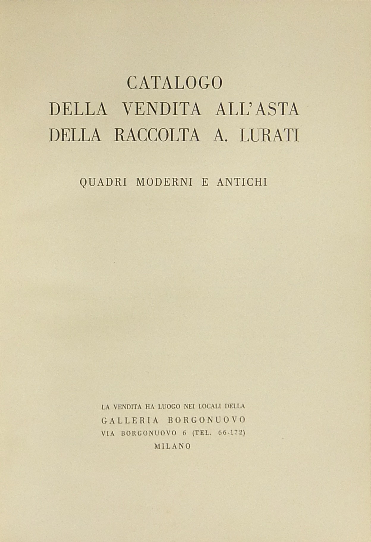 Catalogo della vendita all'asta della raccolta Augusto Lurati. Quadri moderni e antichi