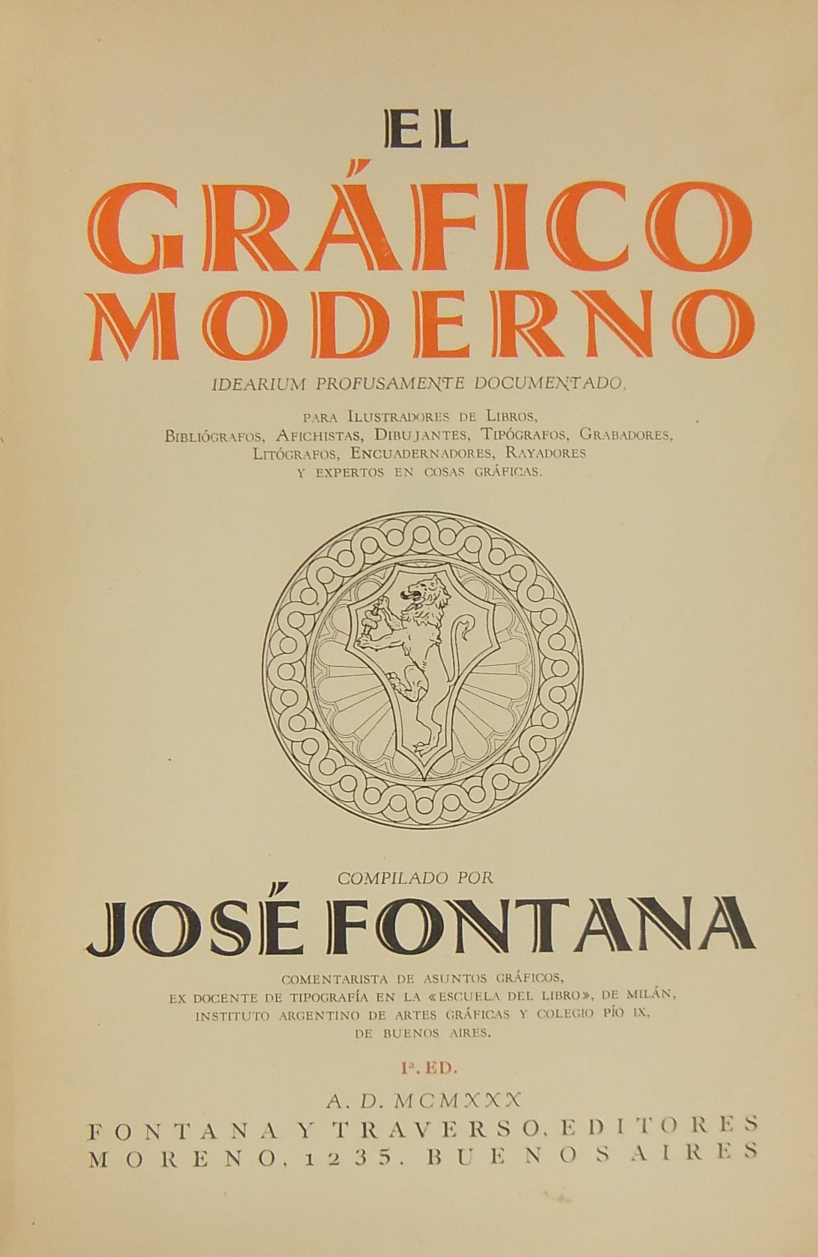 El grafico moderno. Idearium profusamente documentado. Para illustradores de libros bibliografos afichistas dibujantes tipografos grabadores litografos encuadernadores rayadores y expertos en cosas graficas