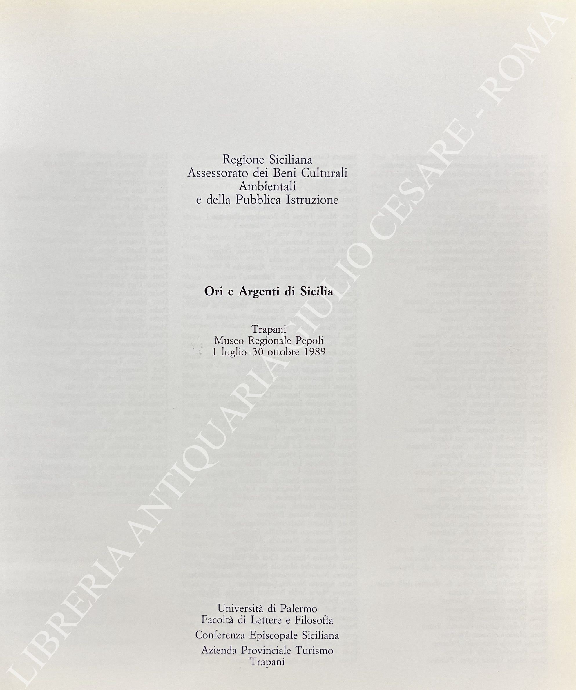 Ori e argenti di Sicilia dal Quattrocento al Settecento. Trapani Museo Regionale Pepoli 1 luglio - 30 ottobre 1989