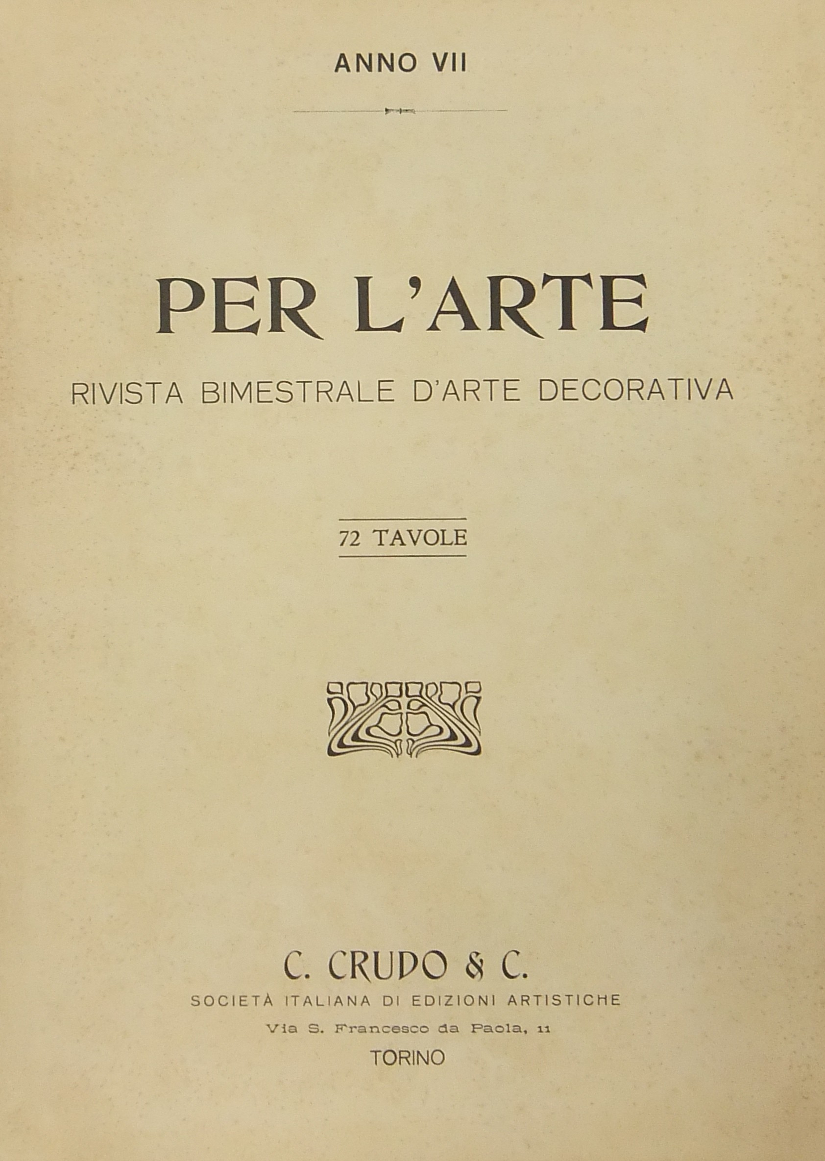 Per l'arte. Rivista bimestrale d'arte decorativa. Anno VII - 1915