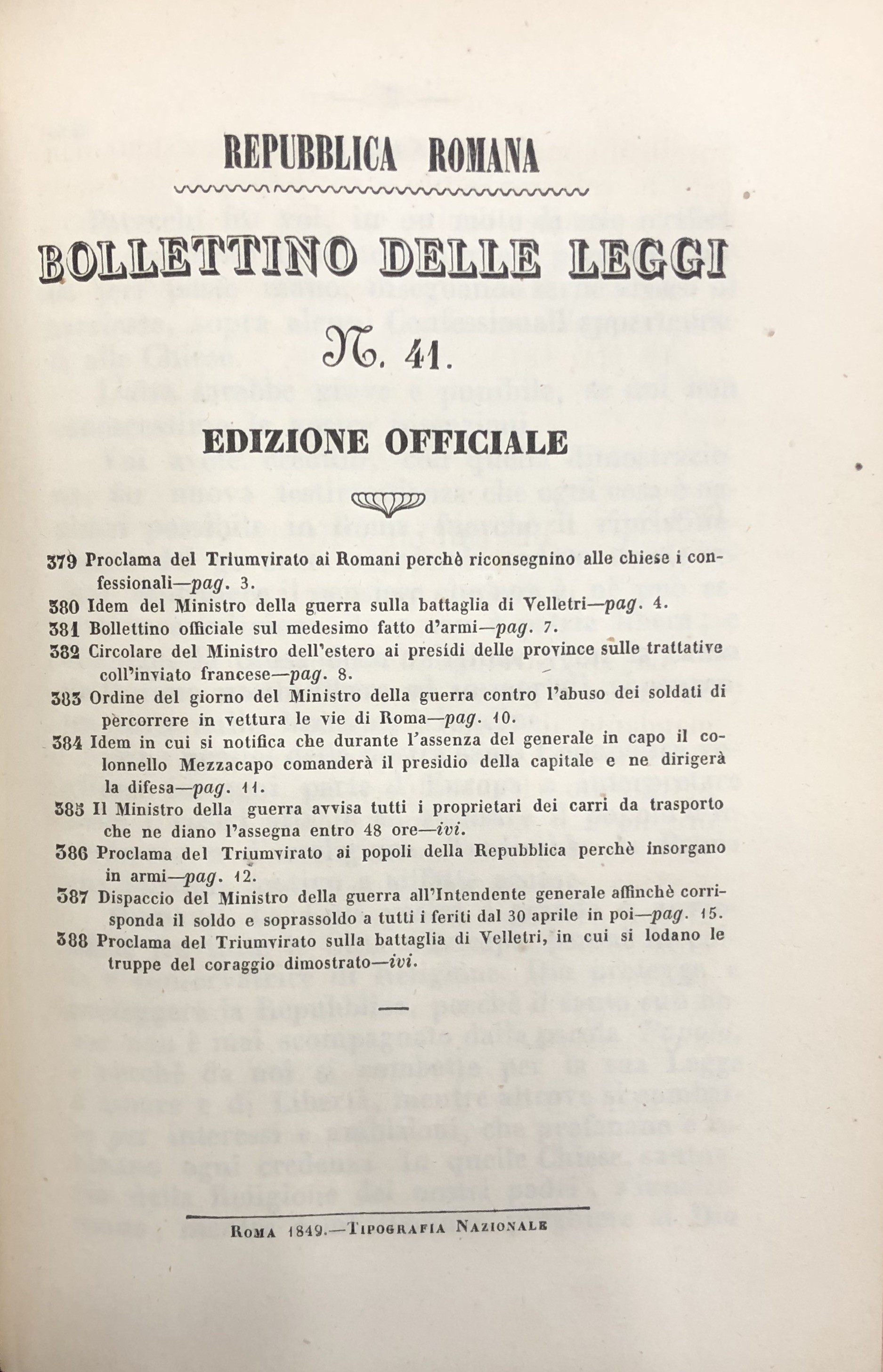 Bollettino delle leggi, proclami, circolari, regolamenti ed altre disposizioni della Repubblica Romana