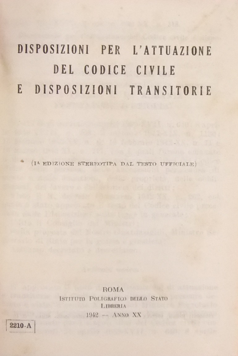Codice civile. Disposizioni per l'attuazione e disposizioni transitorie