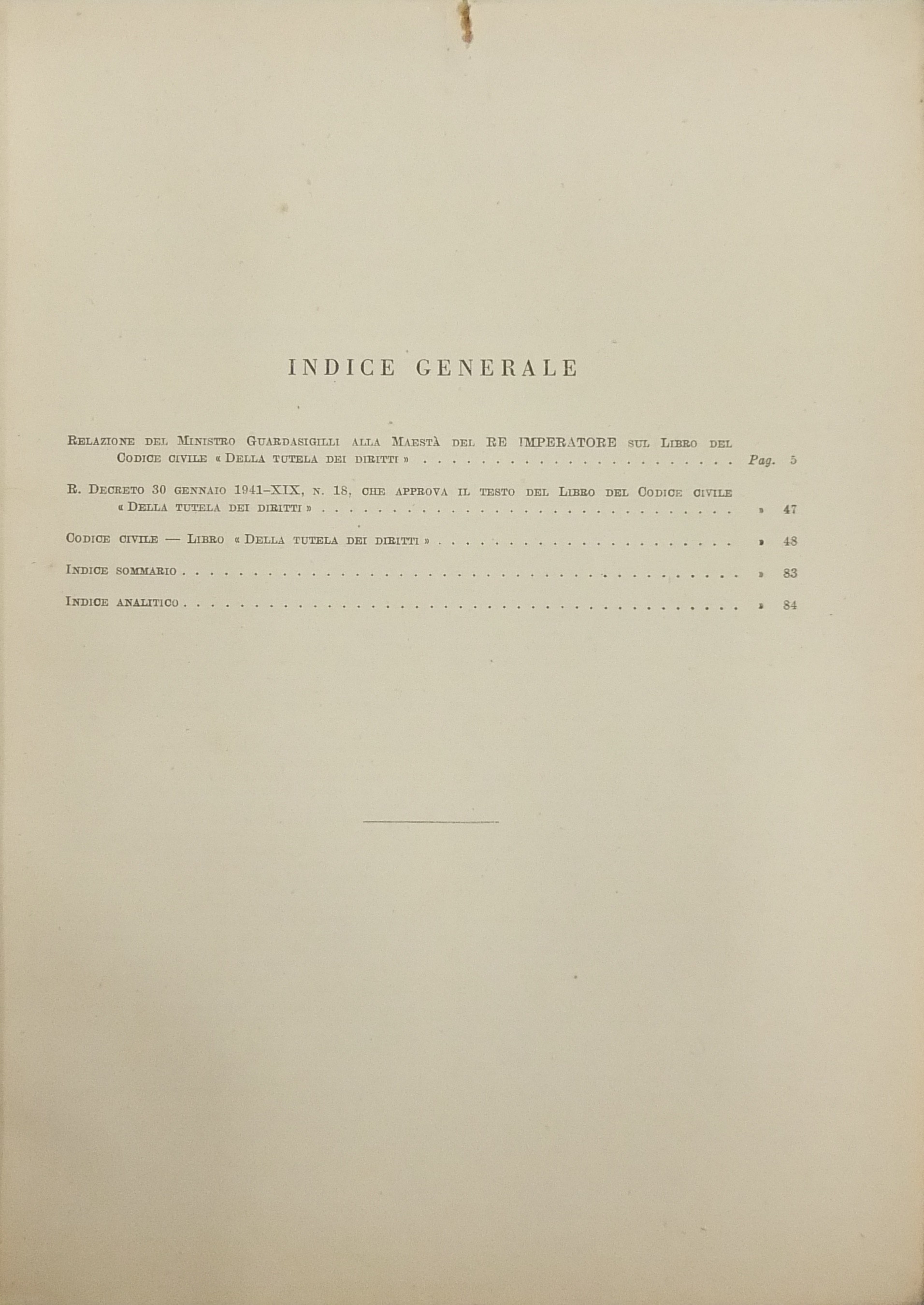 Comprende Relazione del Ministro Guardasigilli (Grandi) alla Maestà del Re Imperatore (43 pagine)
