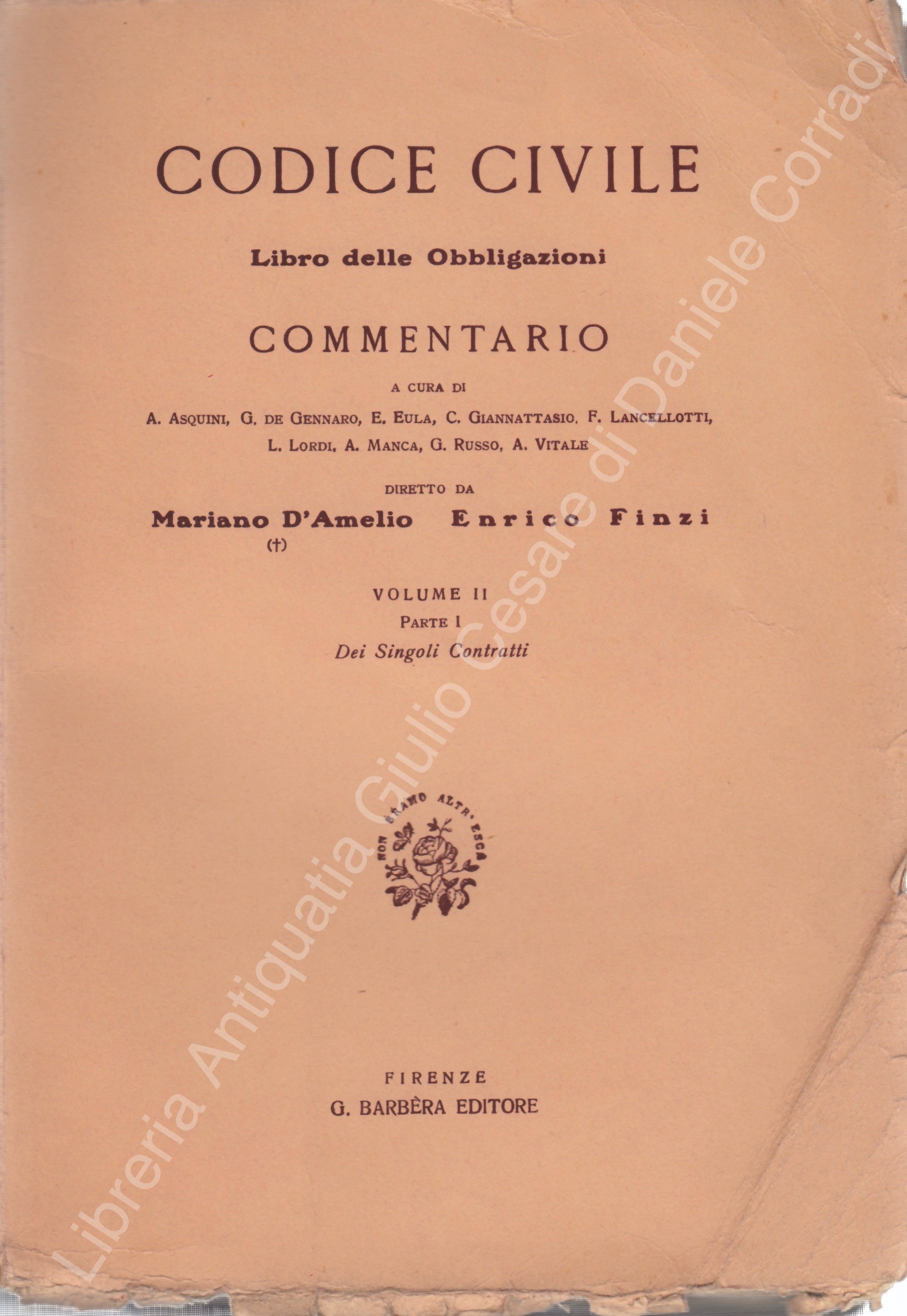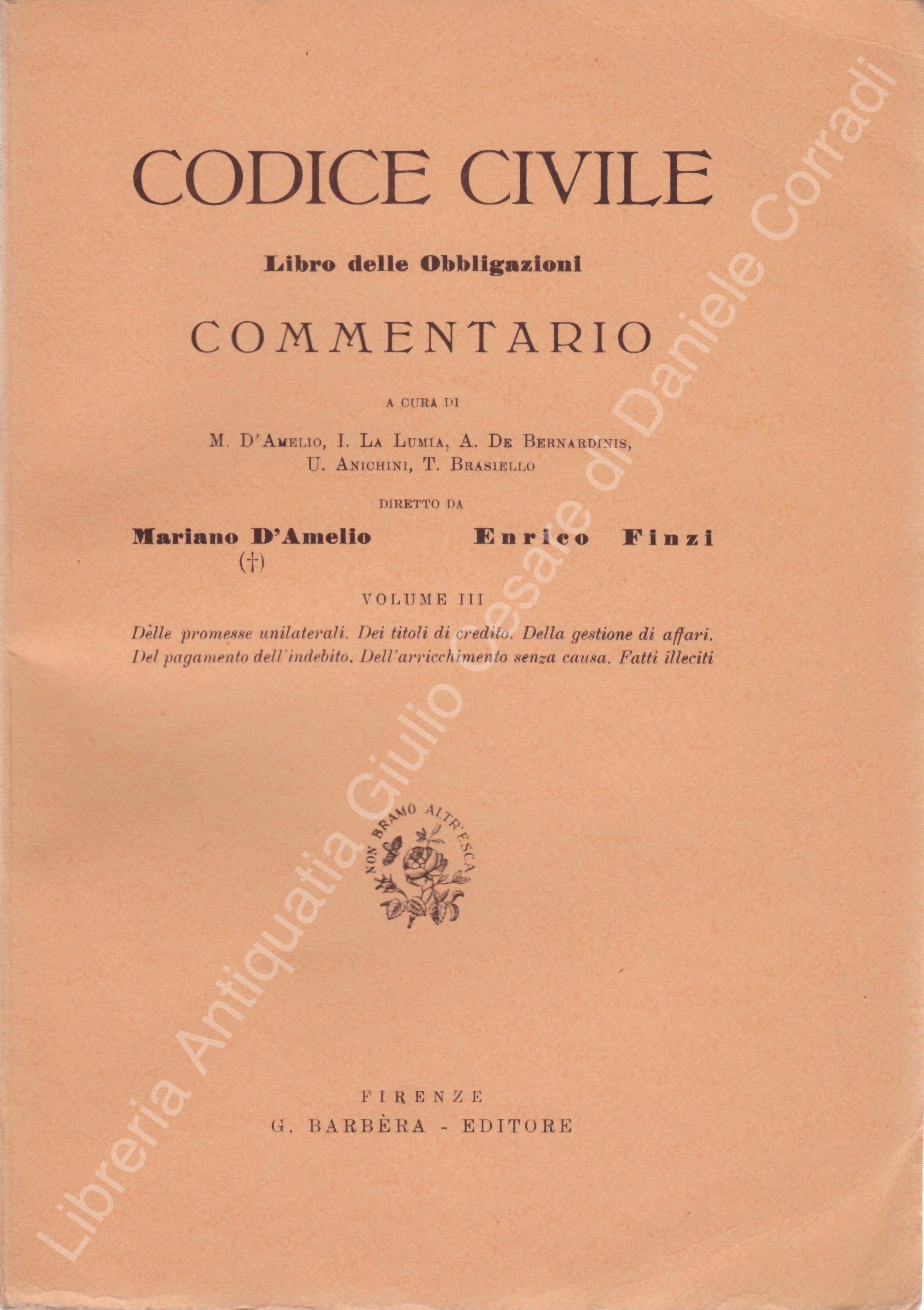 Codice civile. Libro delle obbligazioni. Commentario. Vol. I - Delle obbligazioni e dei contratti in generale; Vol. II parte I - Dei singoli contratti; Vol. II parte II - Dei contratti speciali; Vol. III - Delle promesse unilaterali. Dei titoli di credito. Della gestione di affari. Del pagamento dell'indebito. Dell'arricchimento senza causa. Dei fatti illeciti