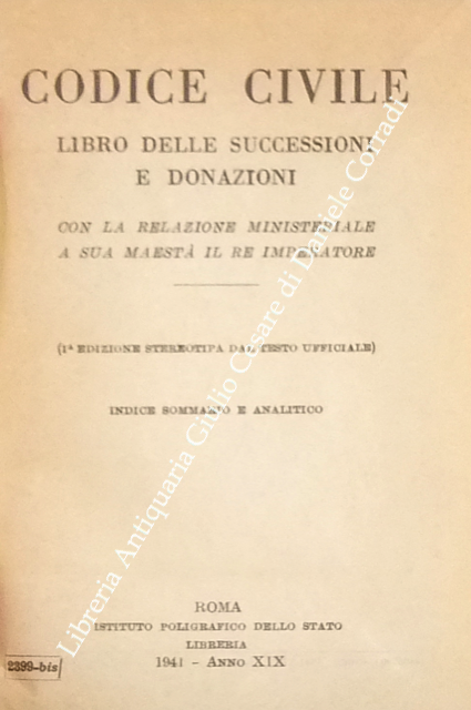 Codice civile. Libro delle successioni e donazioni con la relazione ministeriale a Sua Maestà il Re Imperatore