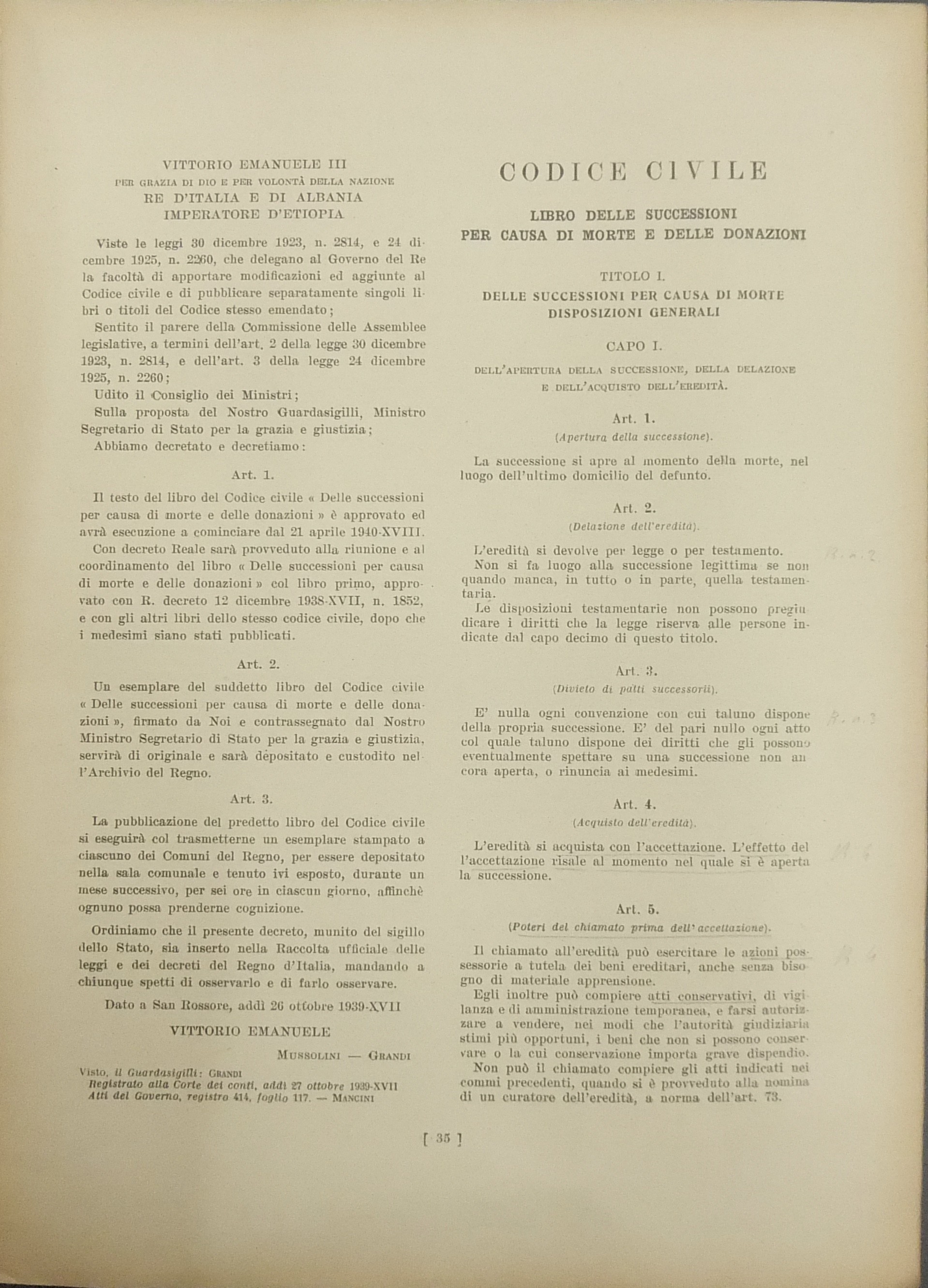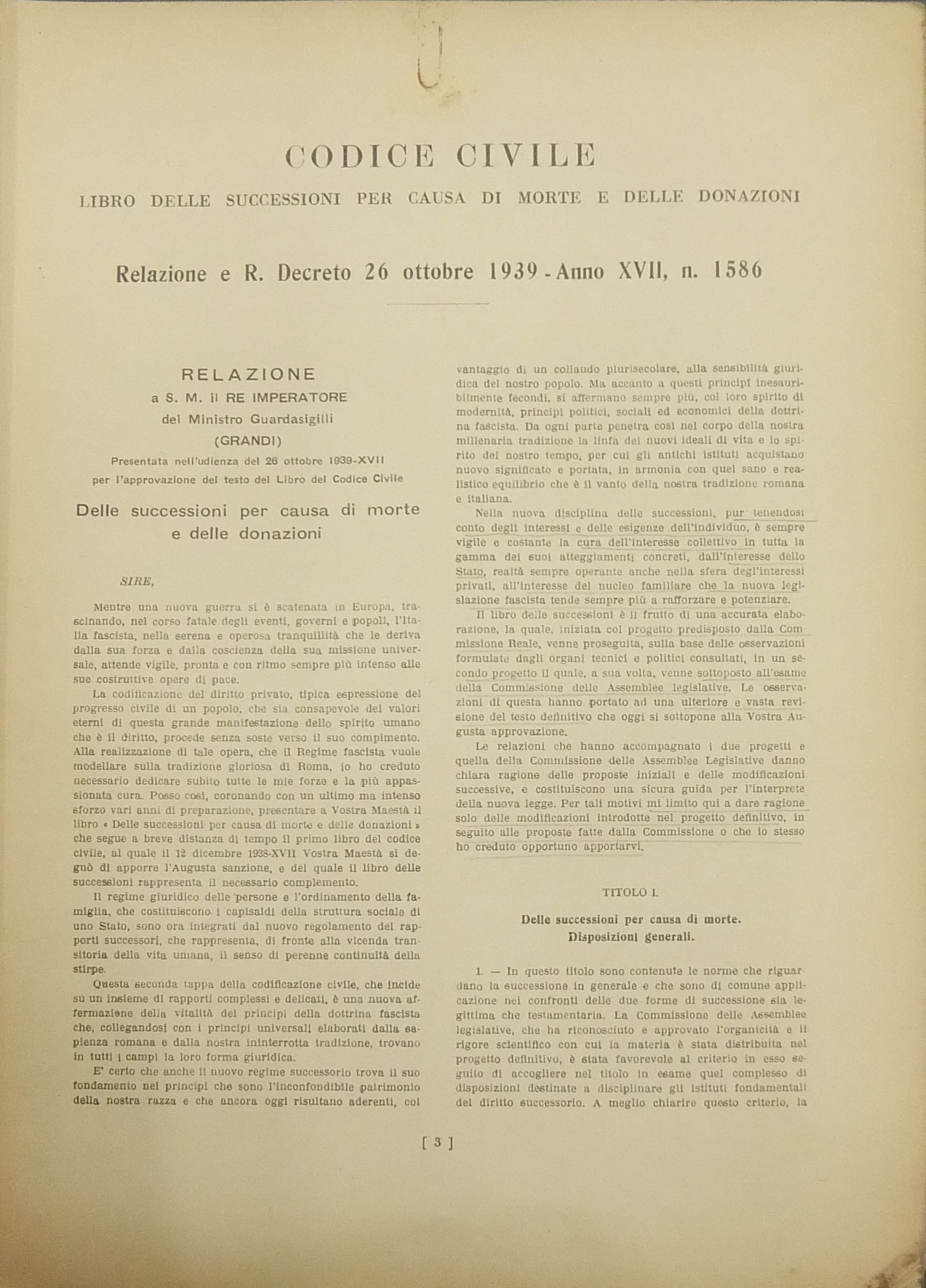 Comprende la Relazione del Ministro Guardasigilli (Grandi) alla Maestà del Re Imperatore (31 pagine)