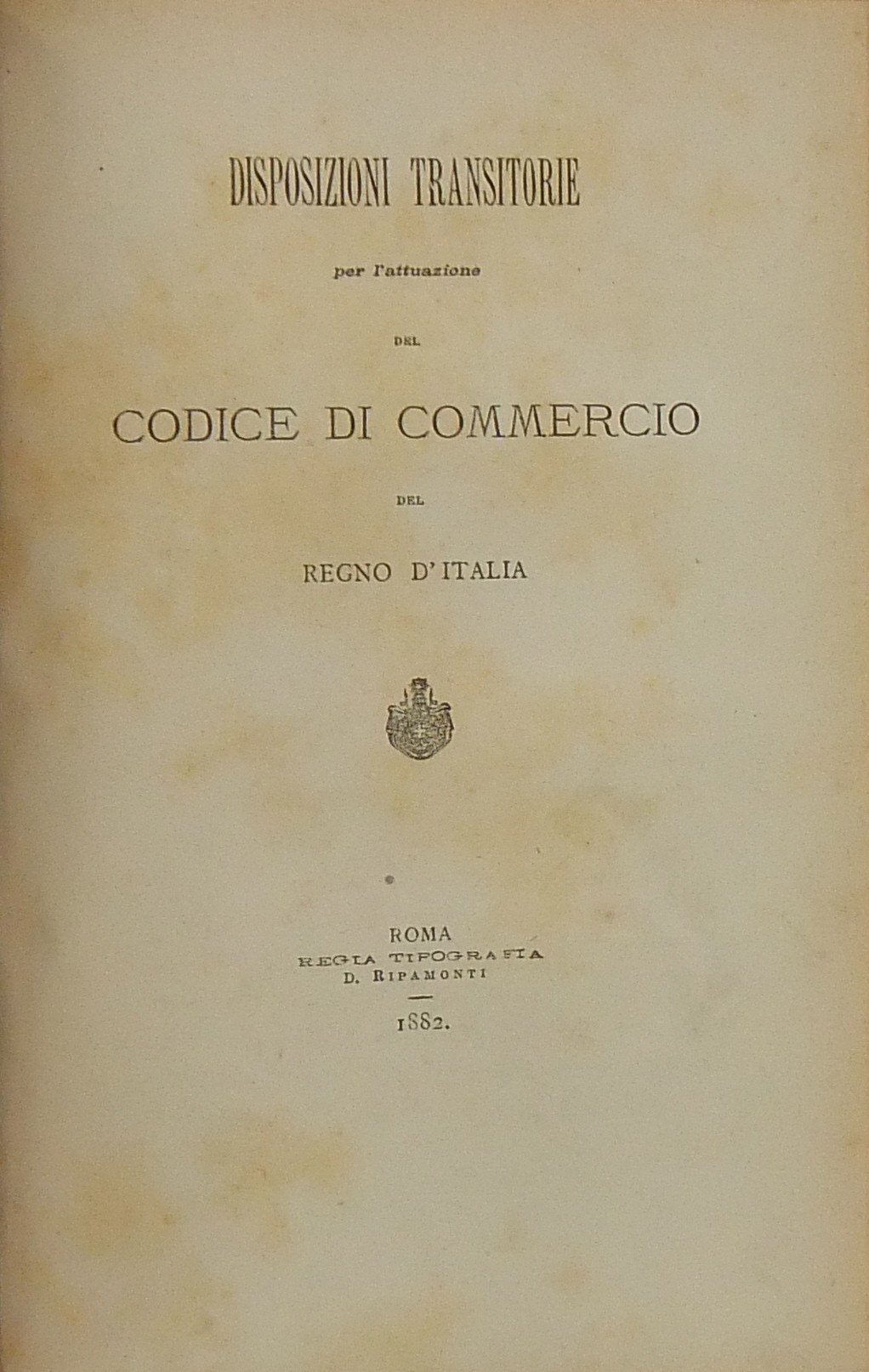 Codice di commercio del Regno d'Italia. UNITO A: Disposizioni transitorie per l'attuazione del Codice di commercio del Regno d'Italia. UNITO A: Regolamento per l'esecuzione del Codice di commercio del Regno d'Italia