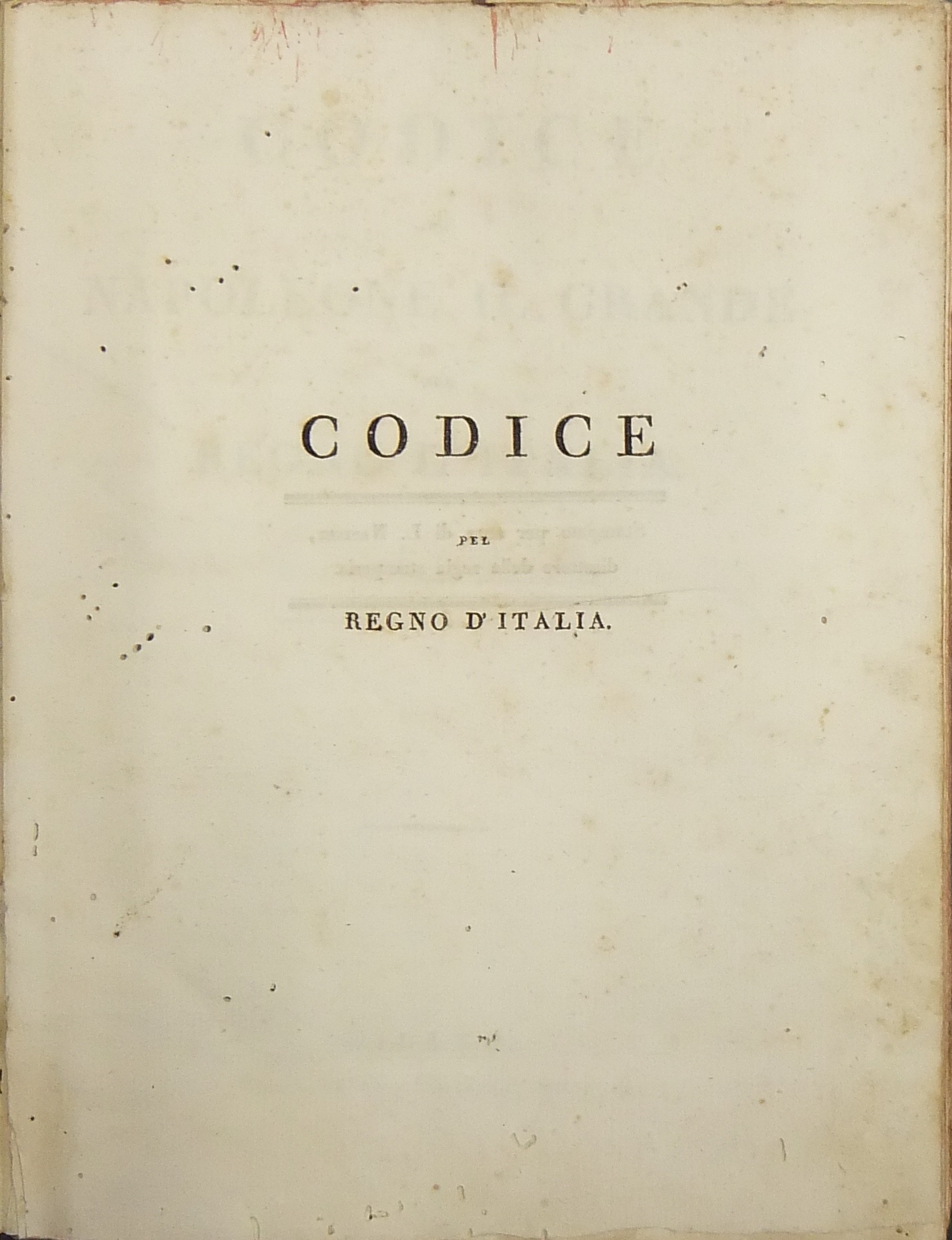 Codice di Napoleone il Grande pel Regno d'Italia. Edizione originale e la sola ufficiale. Stampato per cura di L. Nardini direttore della Regia Stamperia