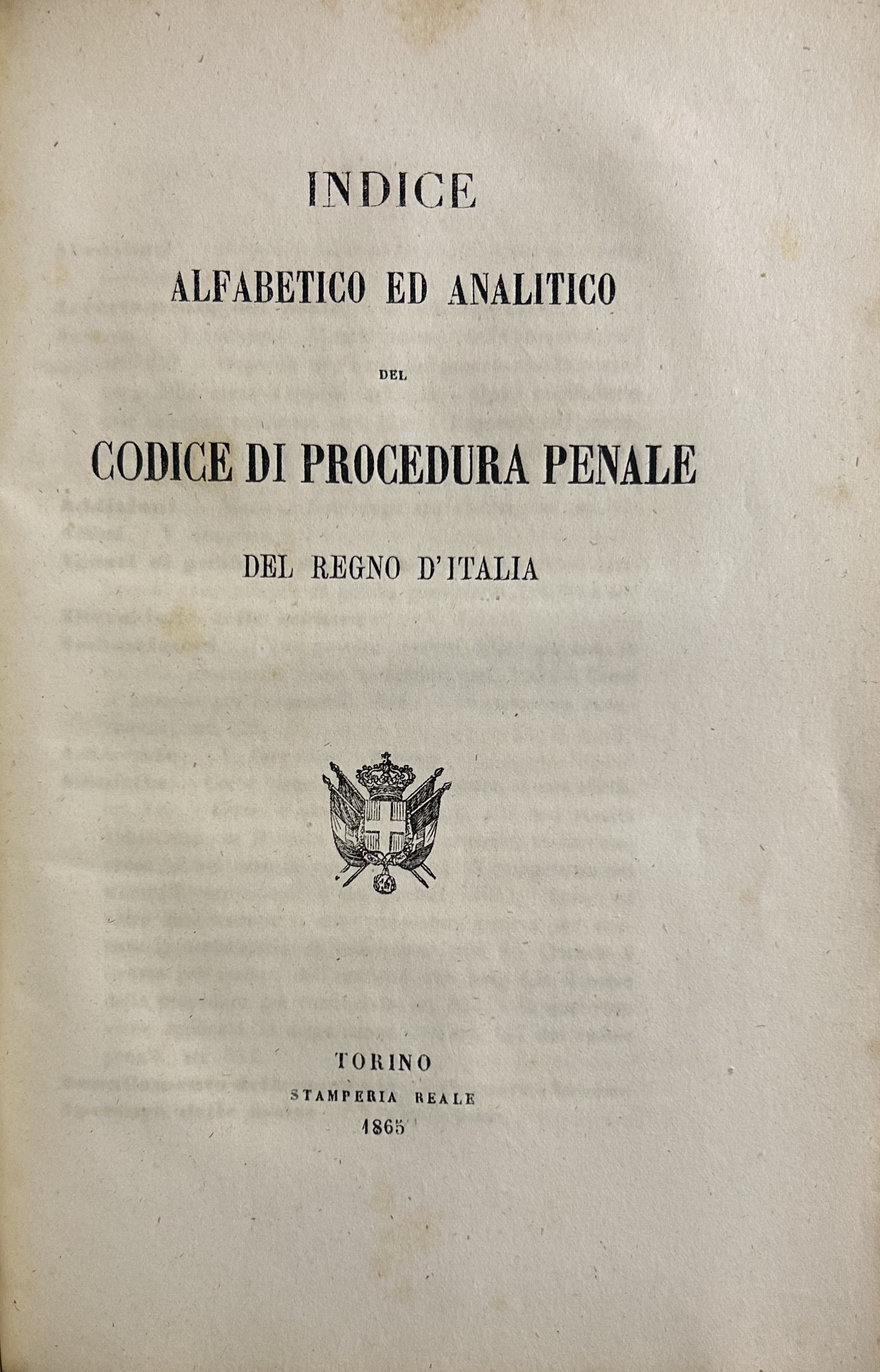 Codice di procedura penale del Regno d'Italia. UNITO A: Indice alfabetico ed analitico del Codice di procedura penale del Regno d'Italia