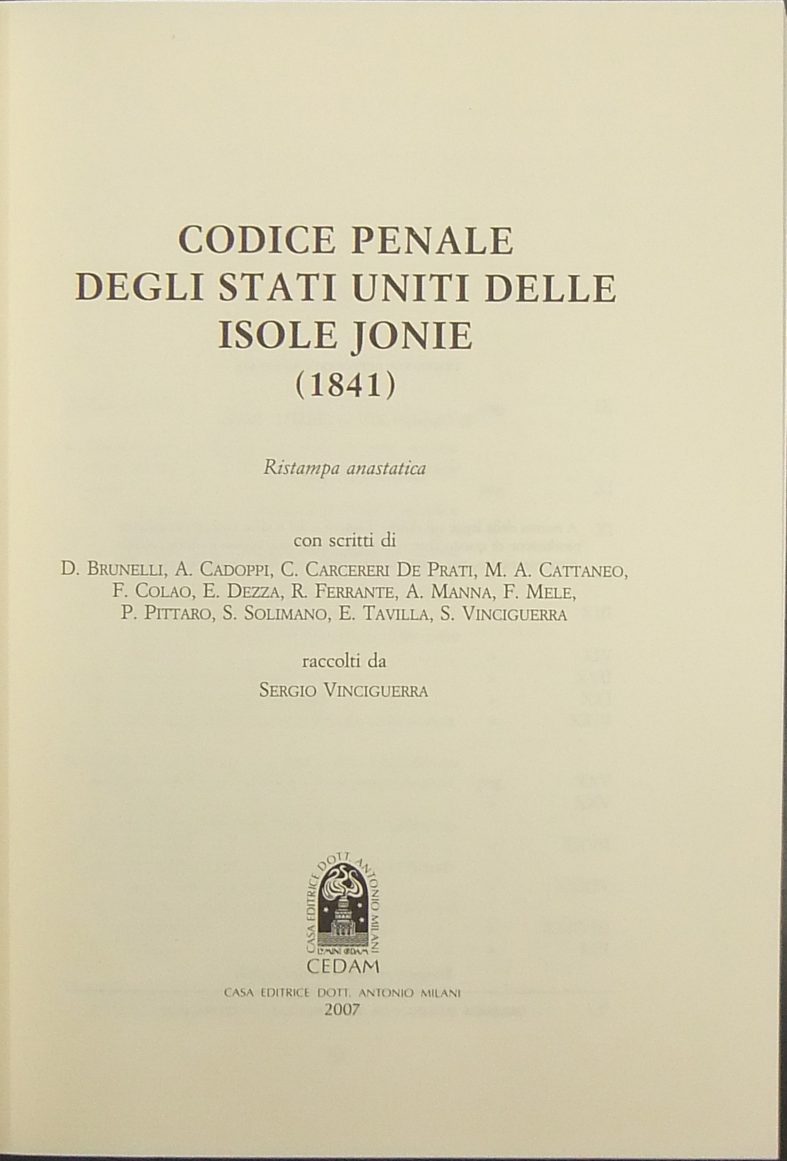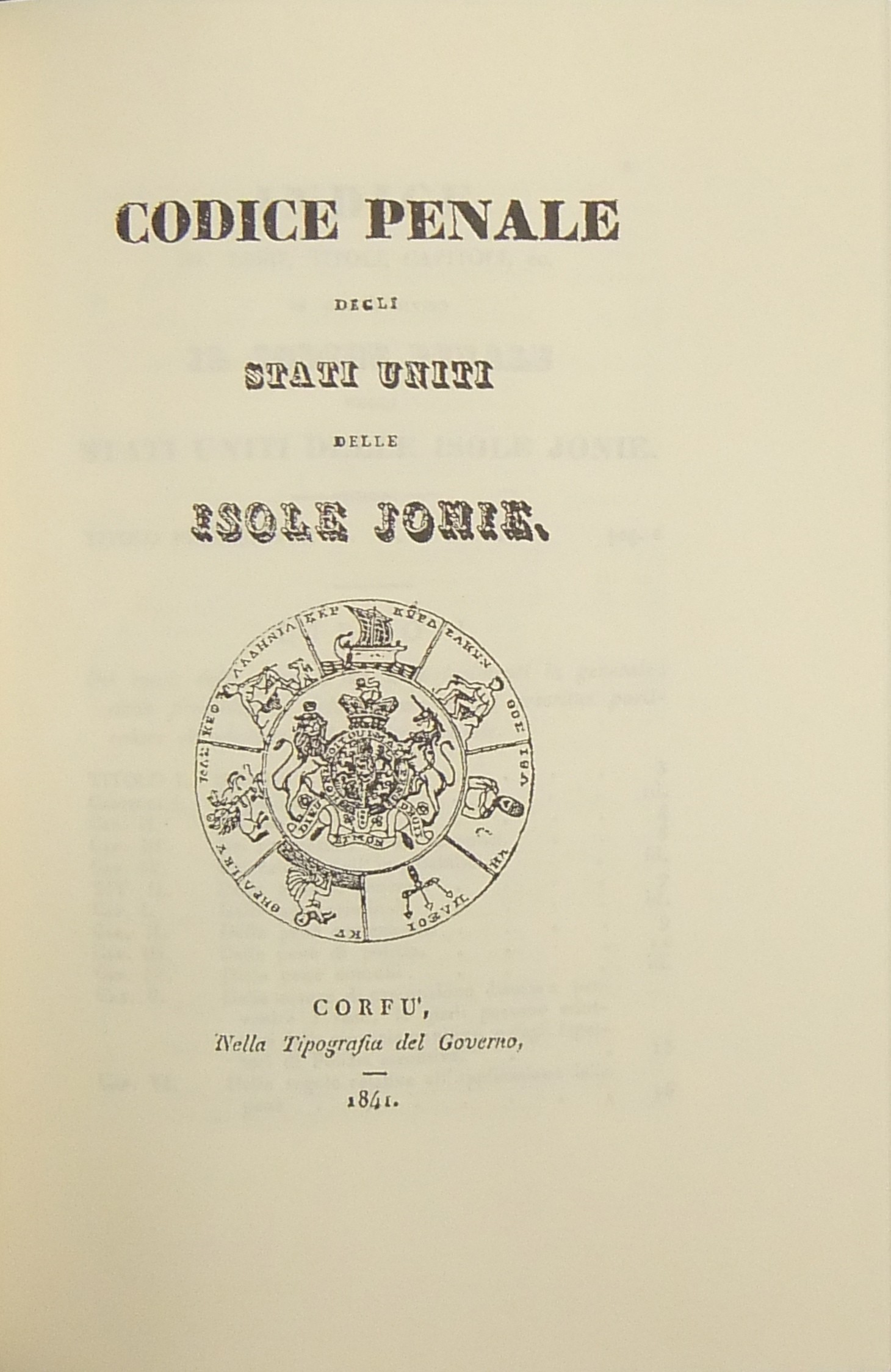 Codice Penale degli Stati Uniti delle Isole Jonie (1841). Con scritti raccolti da Sergio Vinciguerra