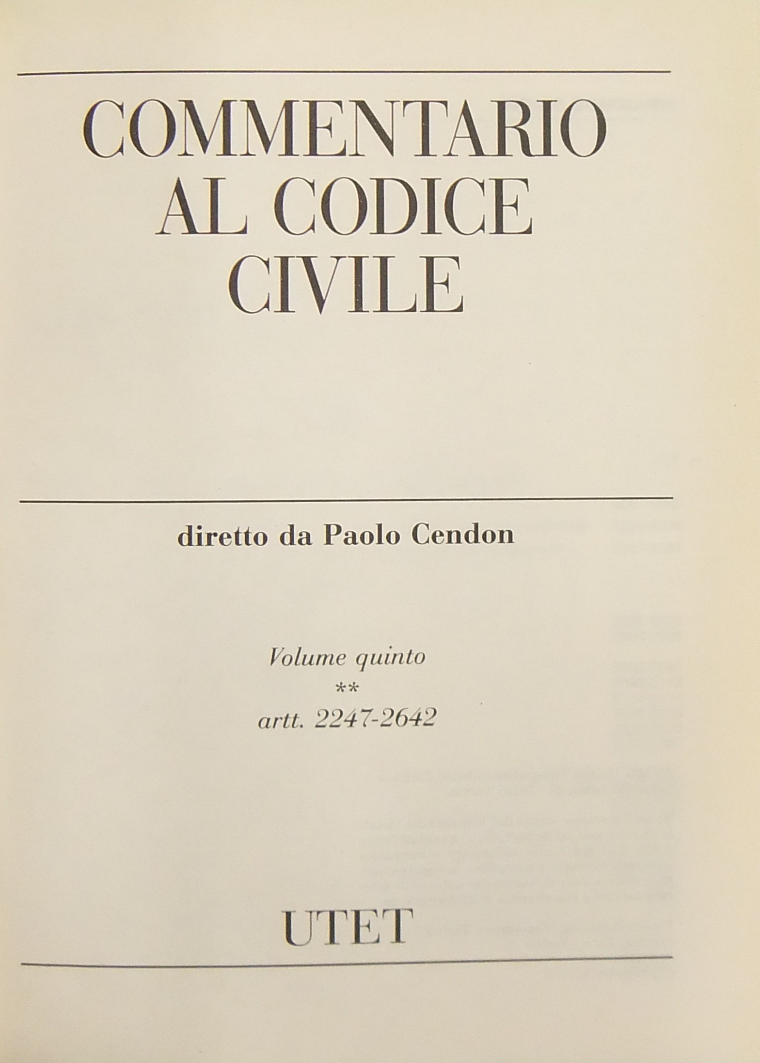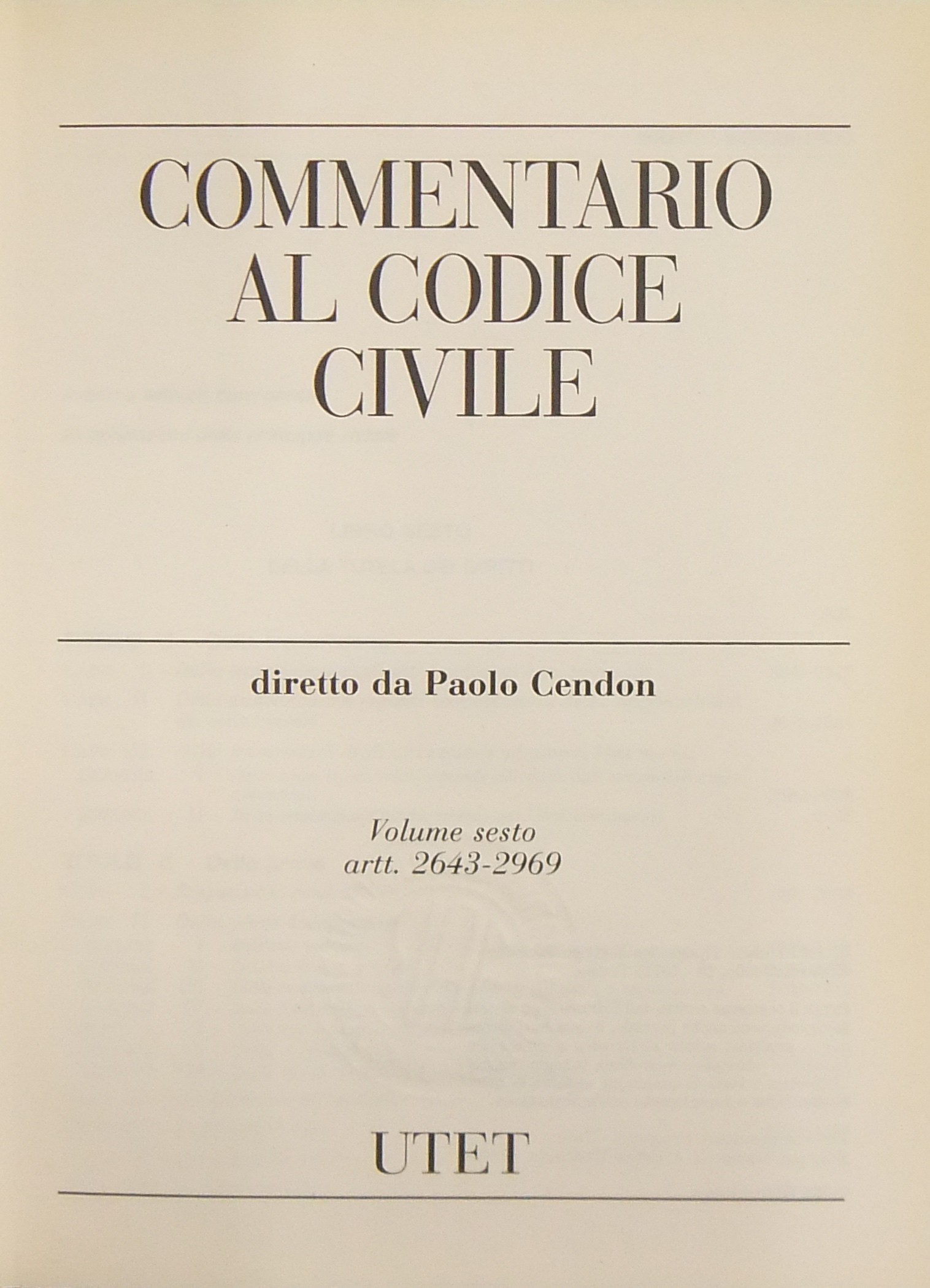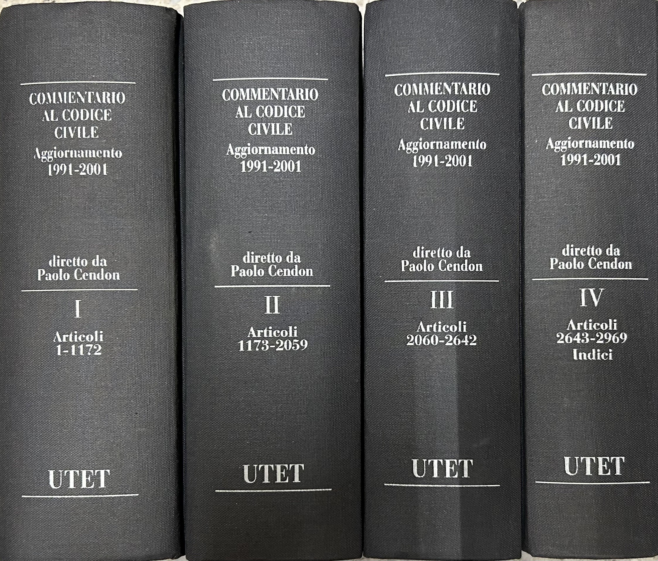 Commentario al codice civile. Vol. I - Delle persone e della famiglia - Artt. 1-455; Vol. II - Delle successioni - Artt. 456-809; Vol. III - Della proprietà - Artt. 810-1172; Vol. IV - Delle obbligazioni (2 tomi) - Artt. 1173-2059; Vol. V - Del lavoro (2 tomi) - Artt. 2060-2642; Vol. VI - Della tutela dei diritti - Artt. 2643-2969; Vol. VII - Indici. + Aggiornamento 1991-2001 (4 volumi)