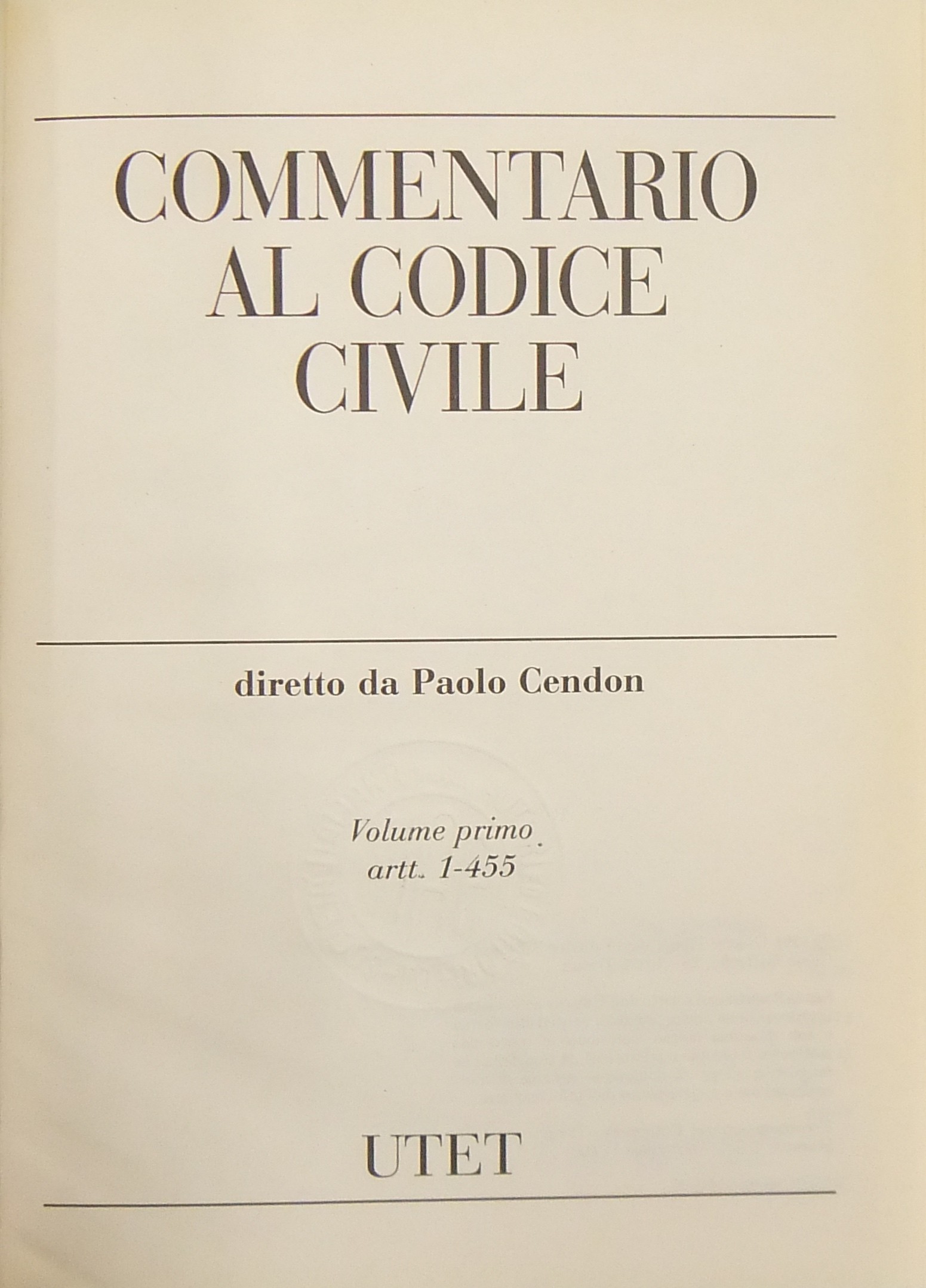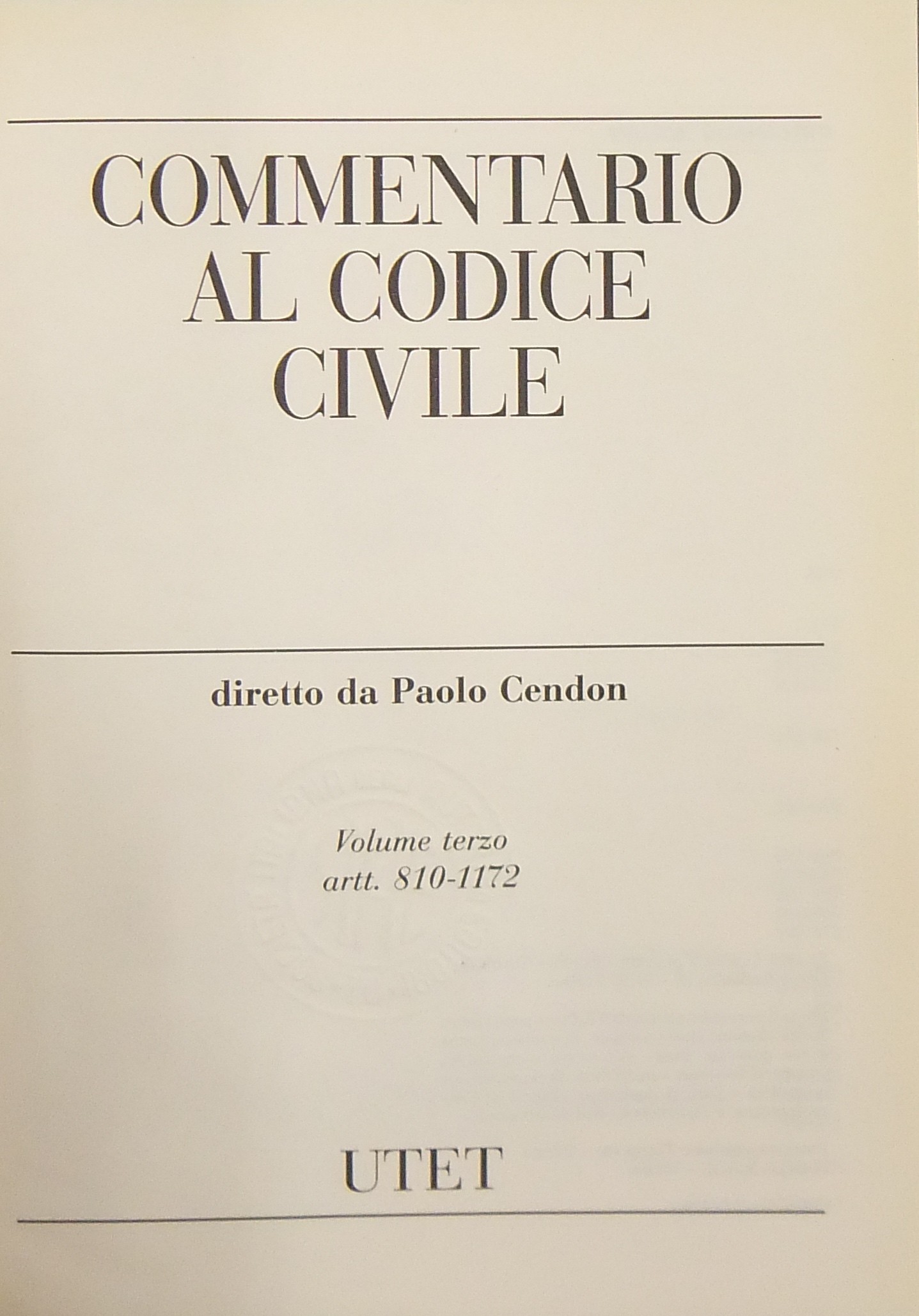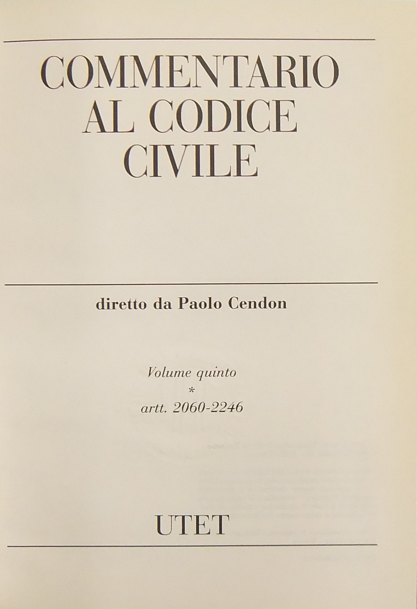 Commentario al codice civile. Vol. I - Delle persone e della famiglia - Artt. 1-455; Vol. II - Delle successioni - Artt. 456-809; Vol. III - Della proprietà - Artt. 810-1172; Vol. IV - Delle obbligazioni (2 tomi) - Artt. 1173-2059; Vol. V - Del lavoro (2 tomi) - Artt. 2060-2642; Vol. VI - Della tutela dei diritti - Artt. 2643-2969; Vol. VII - Indici. + Aggiornamento 1991-2001 (4 volumi)