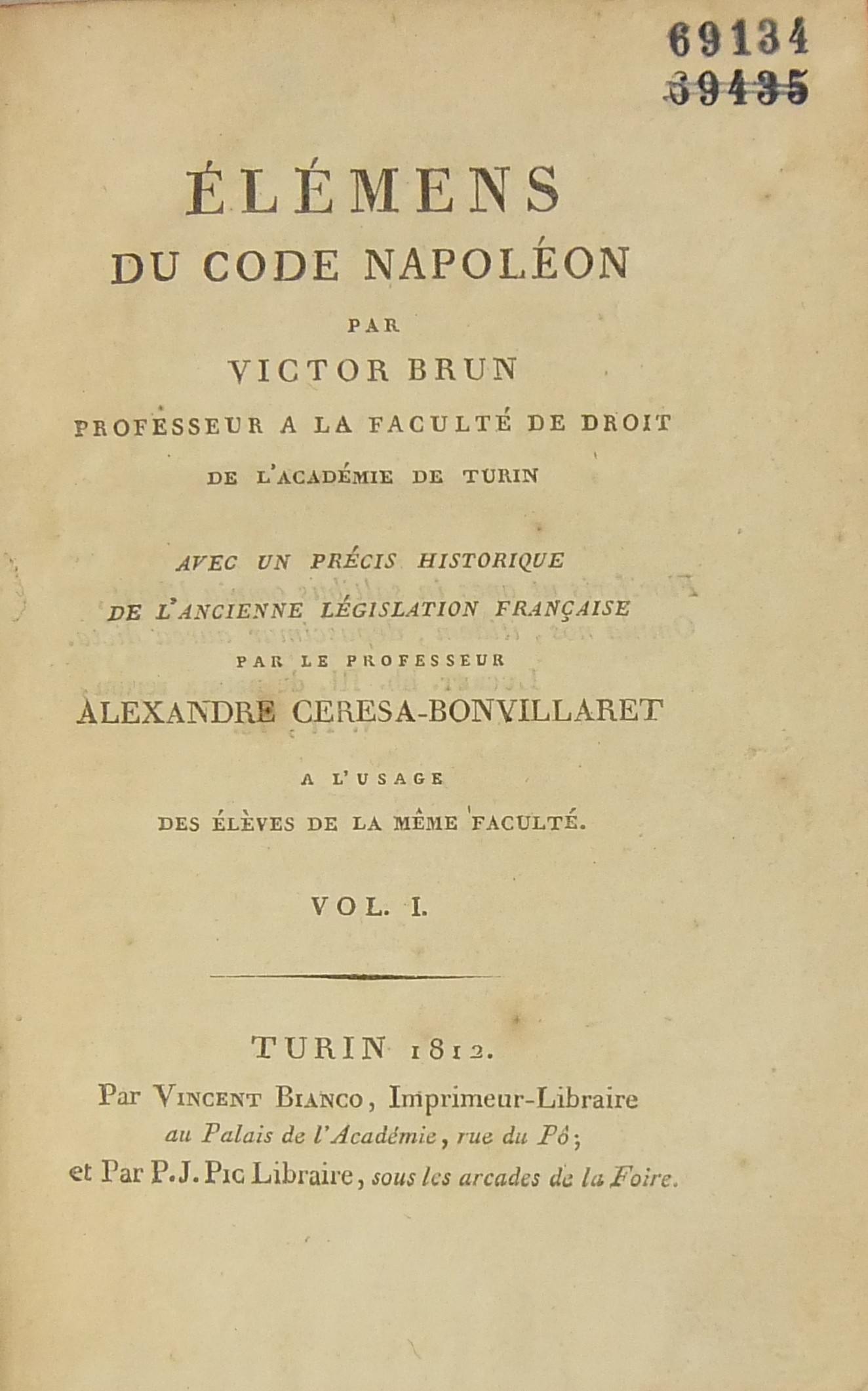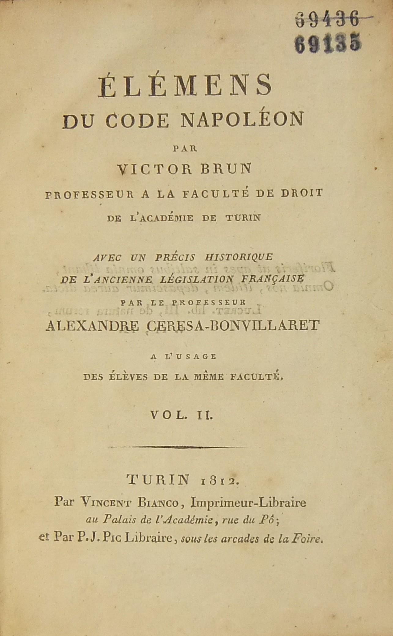 Elemens du code Napoleon. Avec un precis historique de l'ancienne legislation francaise par le professeur Alexandre Ceresa Bonvillaret