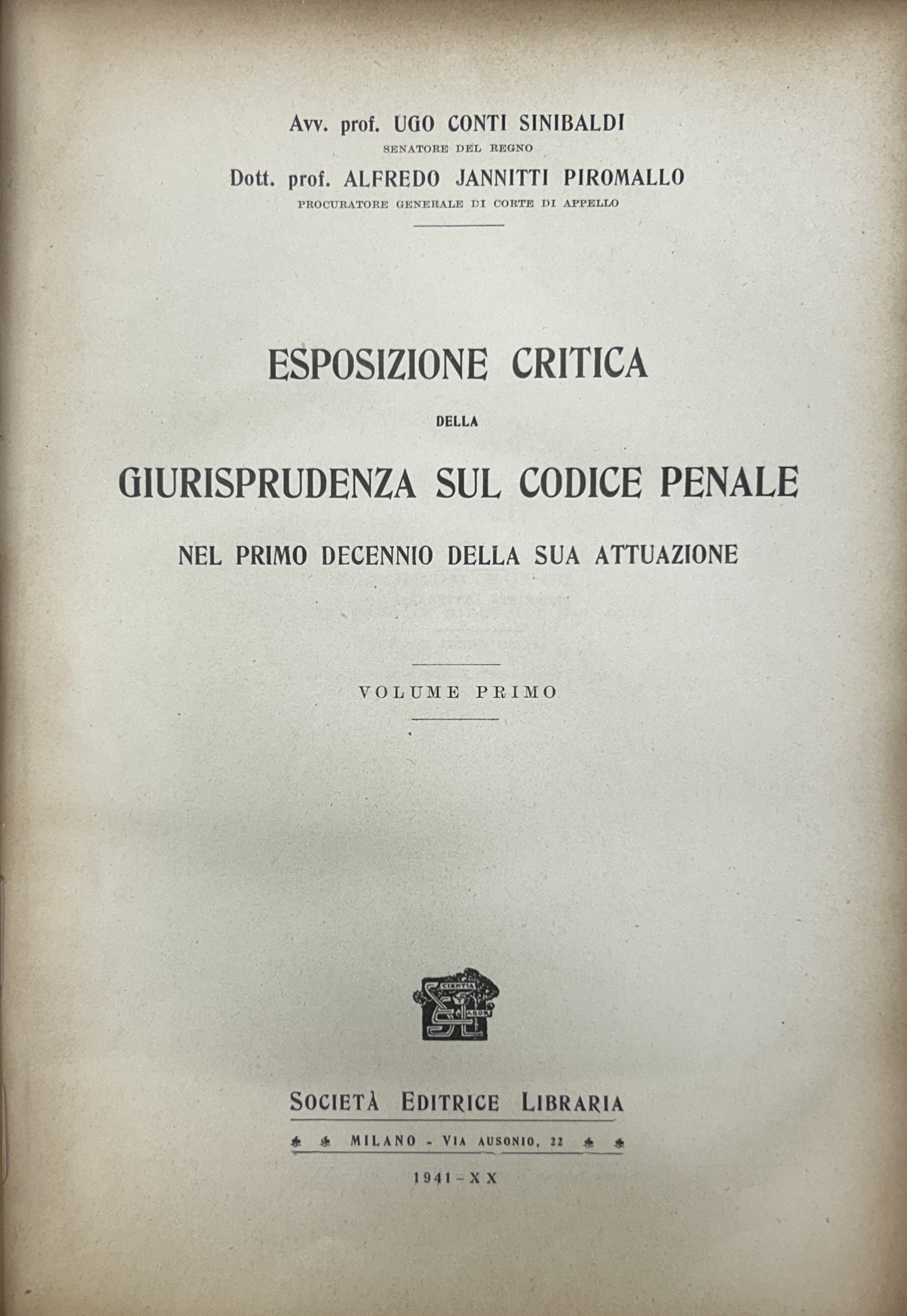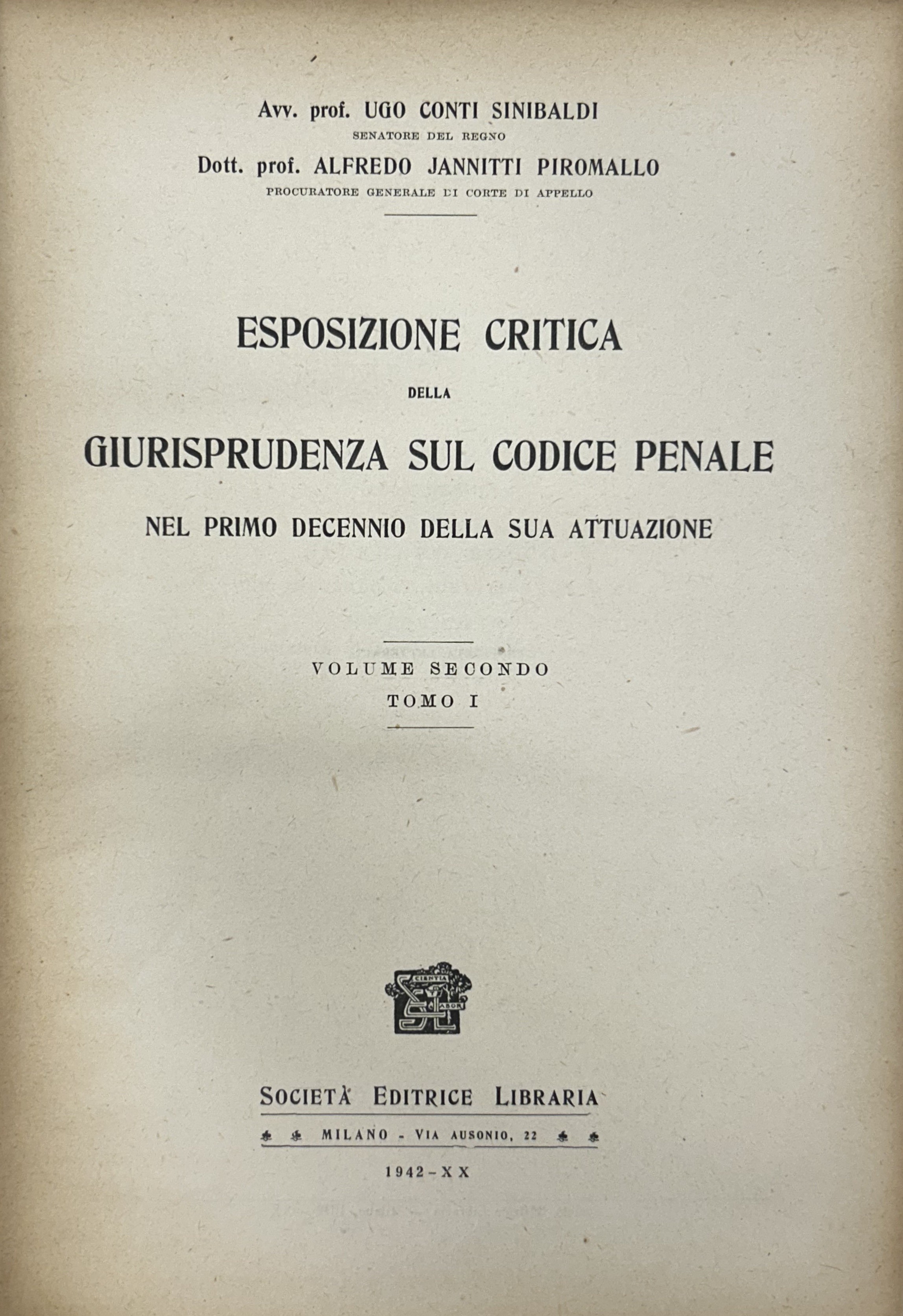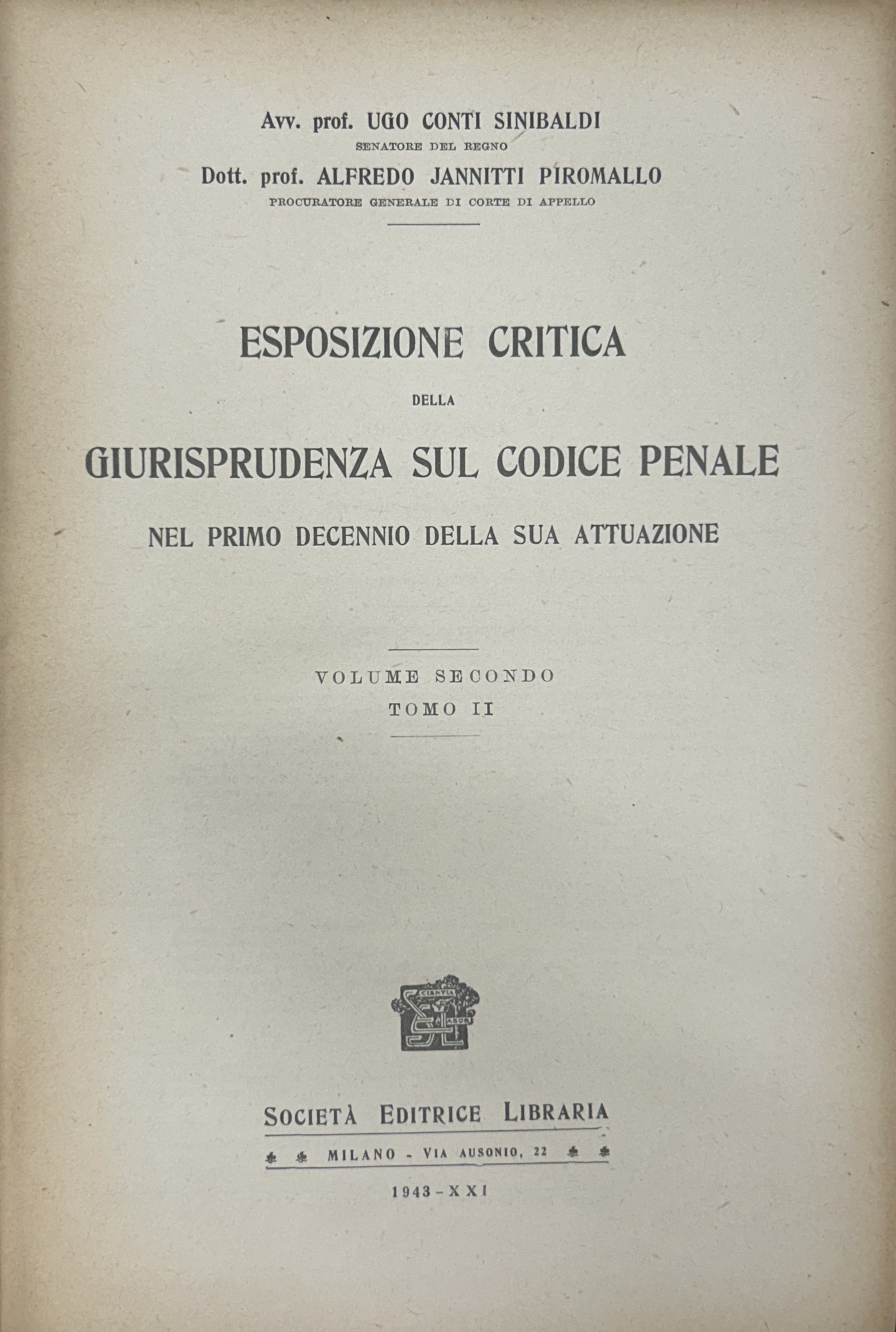 Esposizione critica della giurisprudenza sul codice penale. Nel primo decennio della sua attuazione. Vol. I; Vol. II,1; Vol. II,2