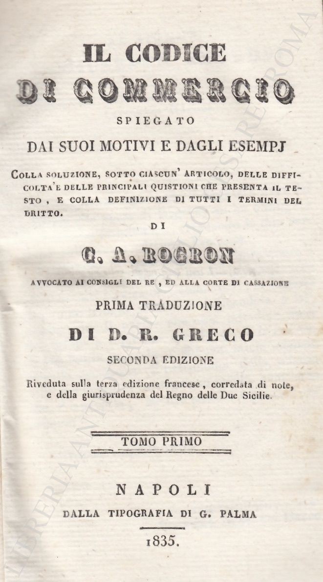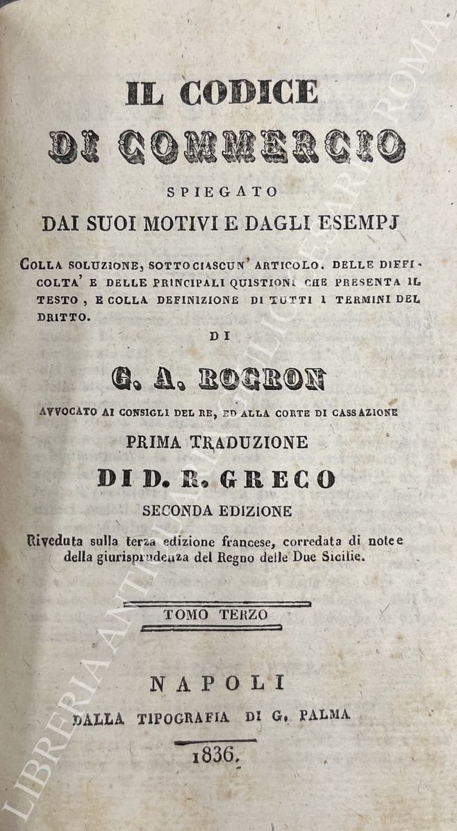 Prima traduzione di D.R. Greco. Seconda edizione riveduta sulla terza edizione francese, corredata di note, e della giurisprudenza del Regno delle Due Sicilie
