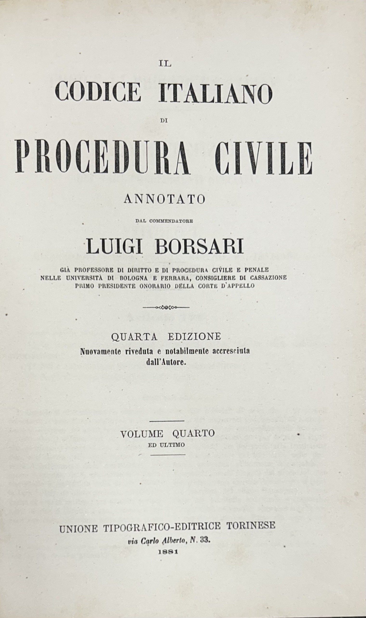 Il Codice italiano di Procedura civile annotato + La pratica del codice di procedura civile italiano ossia formolario degli atti giudiziarii più importanti nei procedimenti civili e commerciali. In relazione al commento pubblicato dall'Unione Tipografico-Editrice