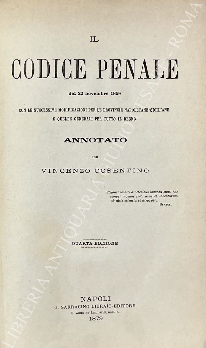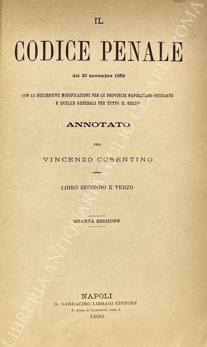 Il Codice penale del 20 novembre 1859 con le successive modificazioni per le provincie napoletane siciliane e quelle generali per tutto il Regno. Annotato
