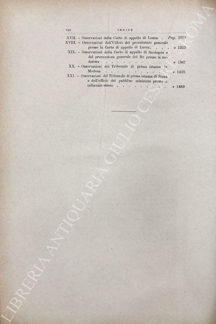 Pubblicazione a cura del Ministero di Grazia e Giustizia e dei Culti. Sono stati pubblicati solo i seguenti volumi: I,1, I,2, II,1, II,2, V, VI, VII e VIII