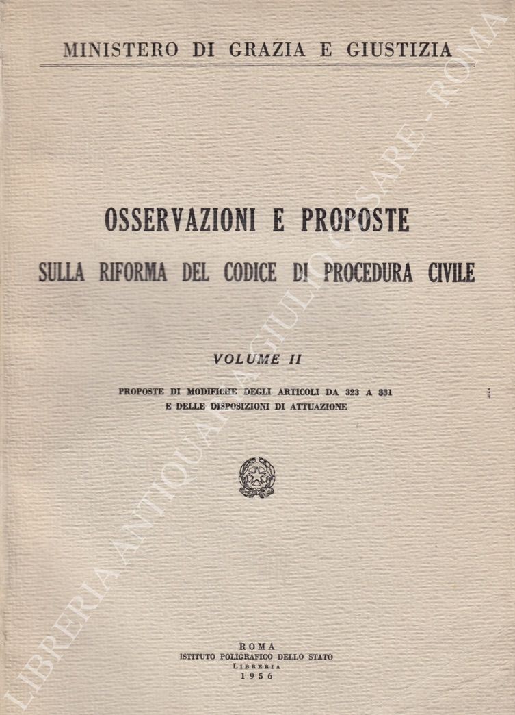 Osservazioni e proposte sulla riforma del Codice di procedura civile. Vol. I - Osservazioni di carattere generale; Proposte di modifiche degli Articoli da 1 a 322; Vol. II - Proposte di modifiche degli Articoli da 323 a 831 e delle disposizioni di attiuazione