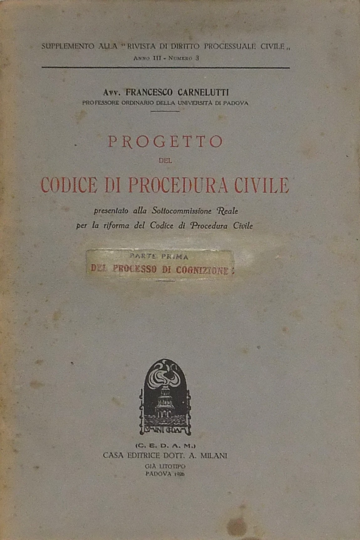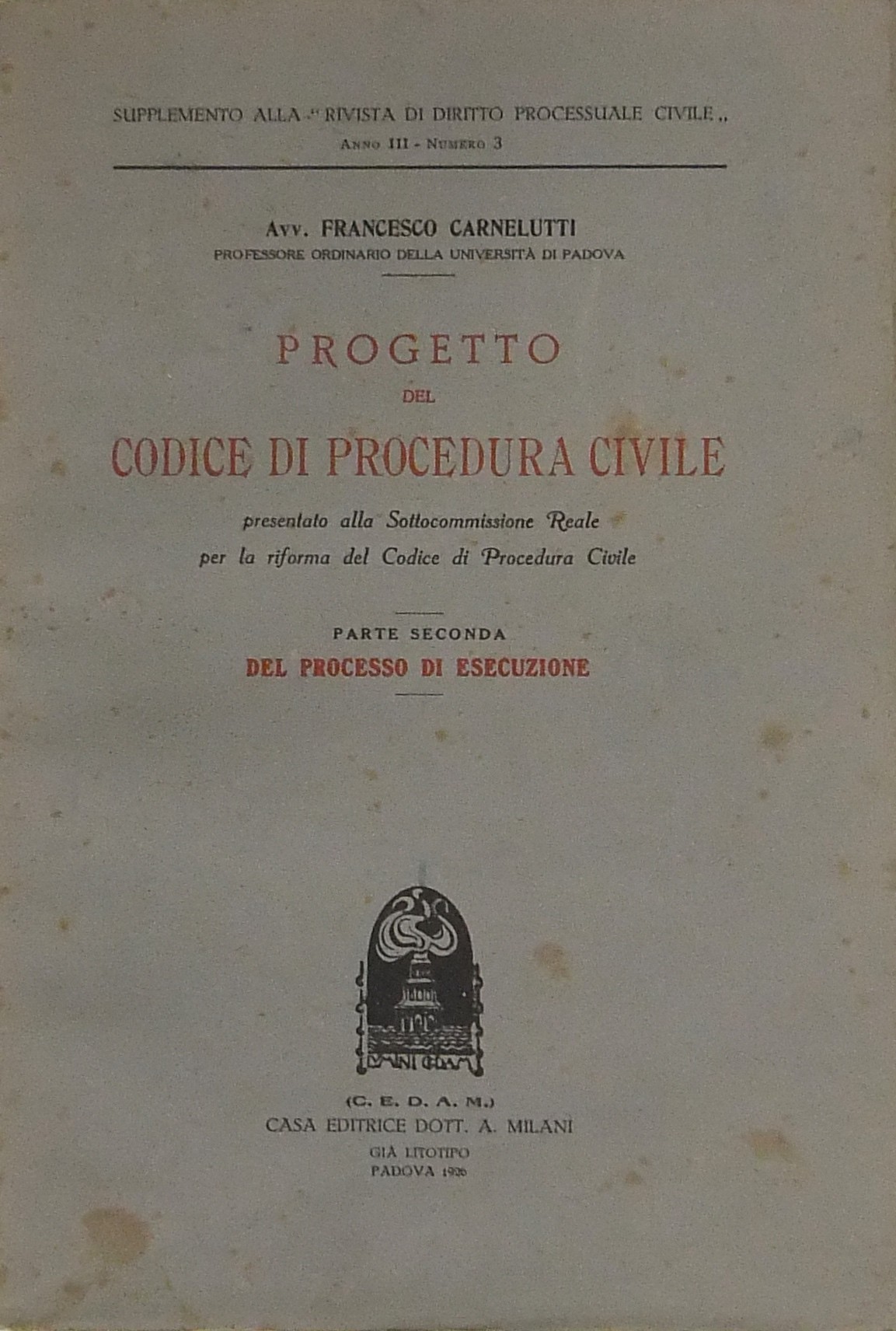 Pubblicazione di supplemento alla Rivista di Diritto Processuale Civile Anno III nn. 1 e 3.