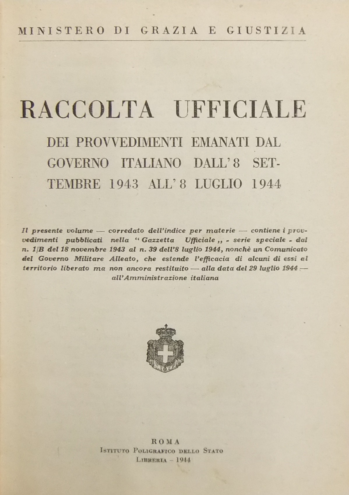 Raccolta ufficiale dei provvedimenti emanati dal Governo Italiano dall'8 settembre 1943 all'8 luglio 1944