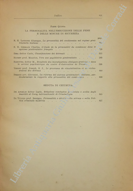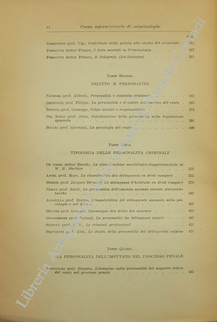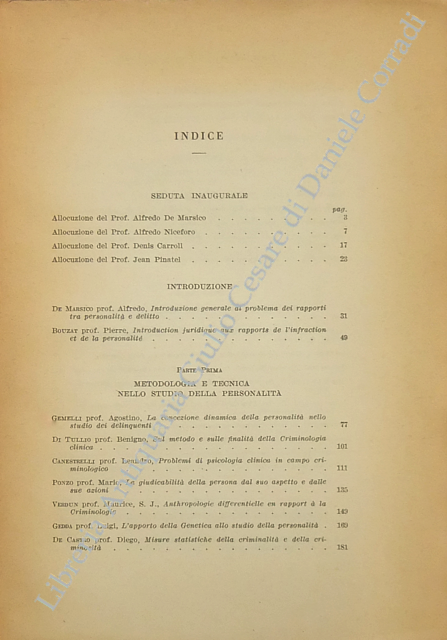 Interventi di: Altavilla, Ancel, Bachet, Badonnel, Battaglini, Bettiol, Bollea, Bouzat, Canestrelli, De Angelis, De Castro, De Grada, De Marsico, Del Rosal, Di Tullio, Erman, Erra, Gedda, Gemelli, Germain, Grassberger, Grispigni, Ferracuti, Franchini, Herzog, Heuyer, Lattanzi, Niceforo, Persico, Ponzo, Sorrentino, Stanciu, Verdun, Vernet