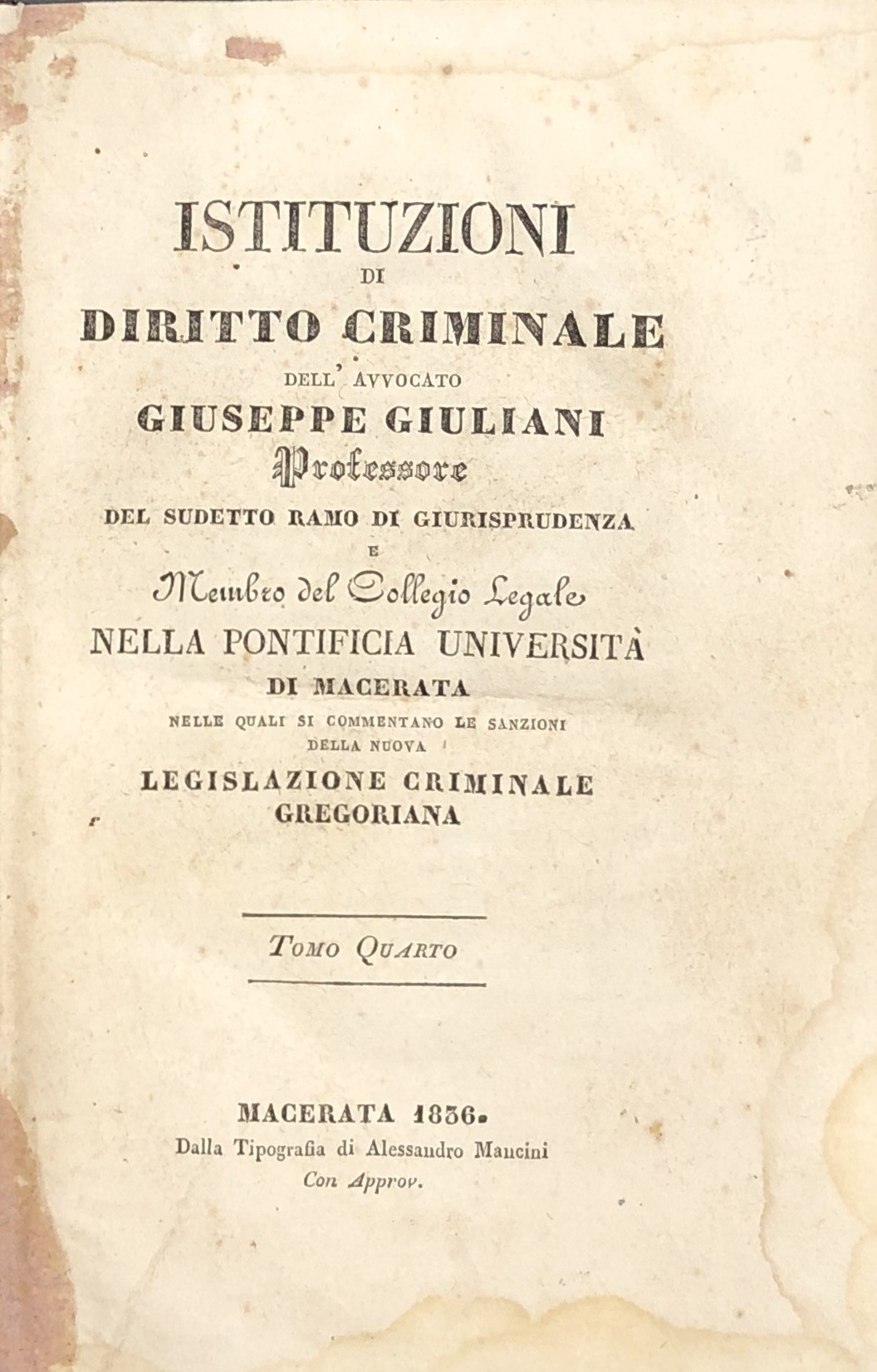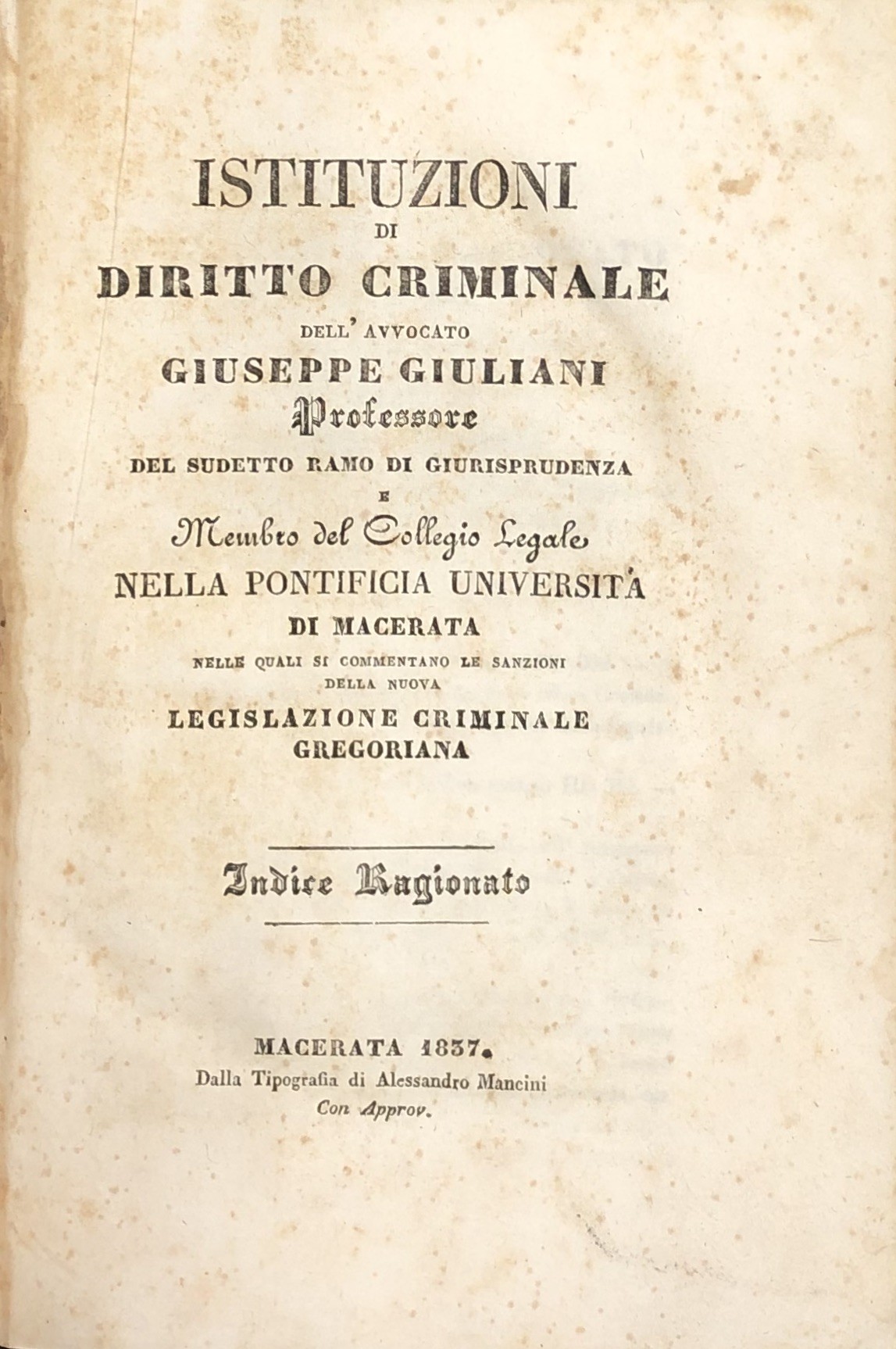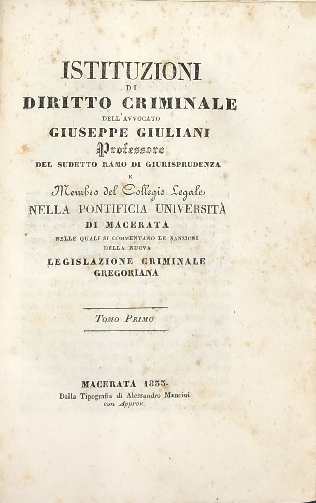 Istituzioni di diritto criminale. Nelle quali si commentano le sanzioni della nuova legislazione criminale gregoriana