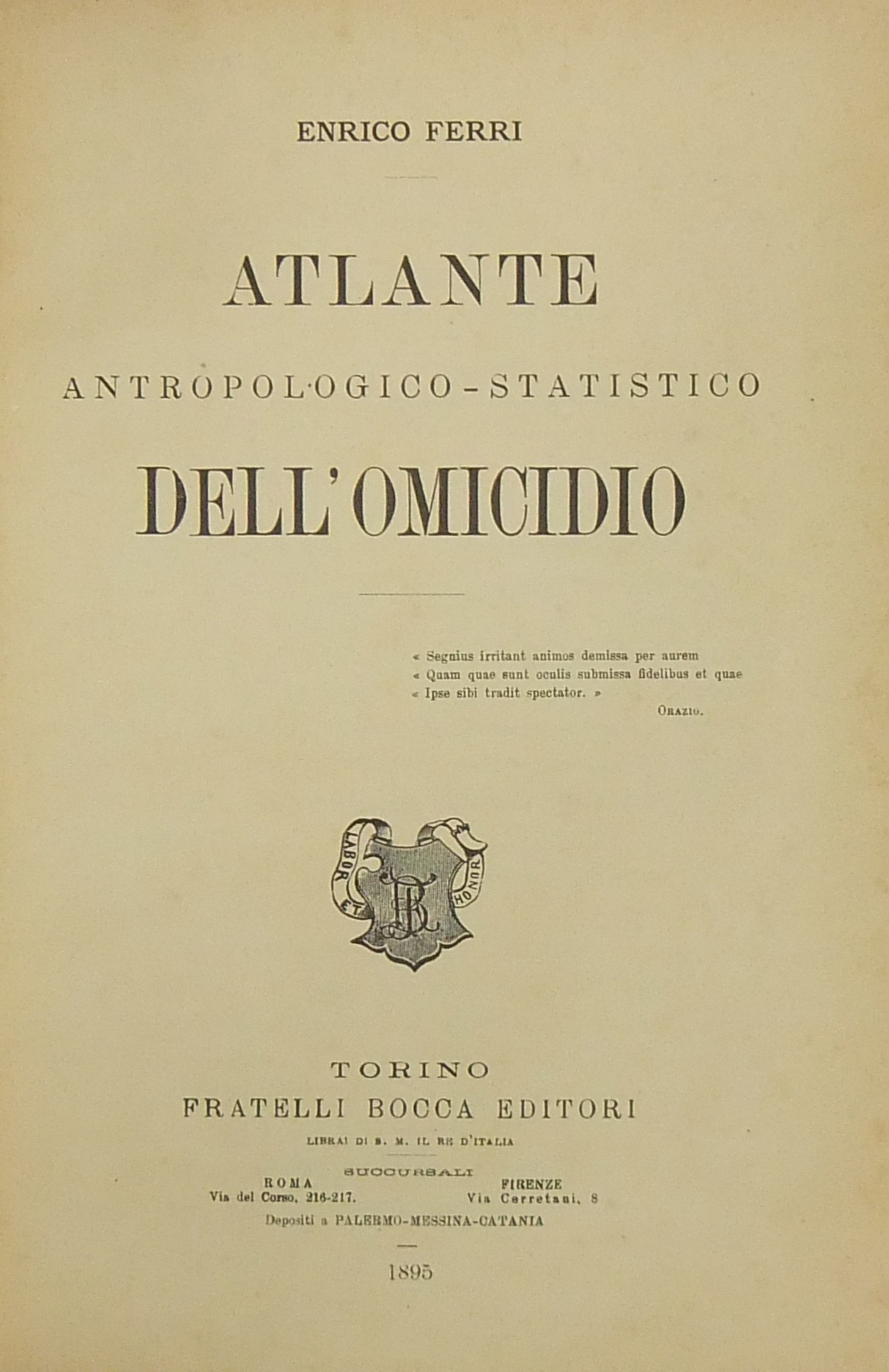 L'omicidio nell'antropologia criminale. (Omicida nato e Omicida pazzo) + Atlante antropologico-statistico dell'omicidio