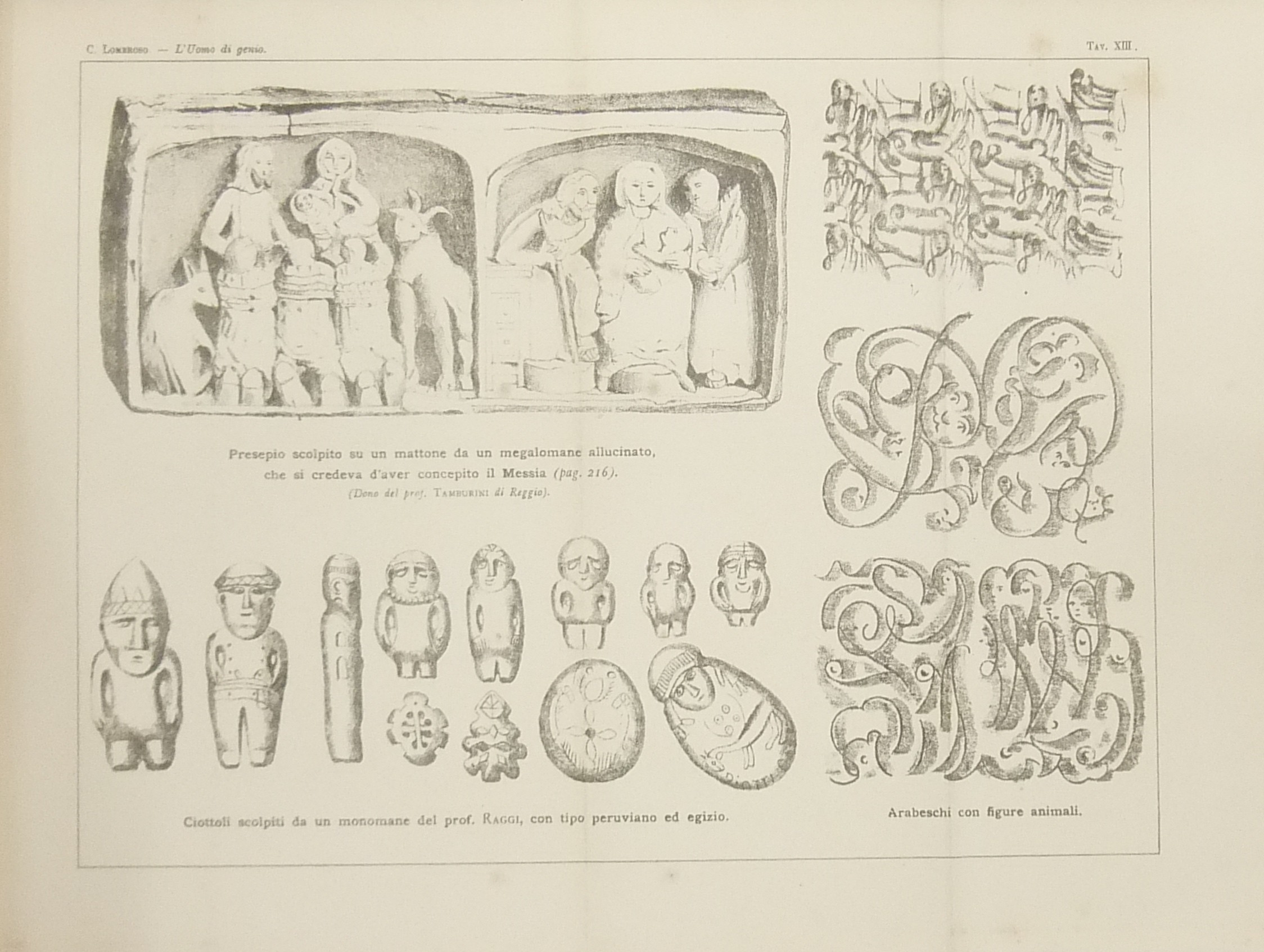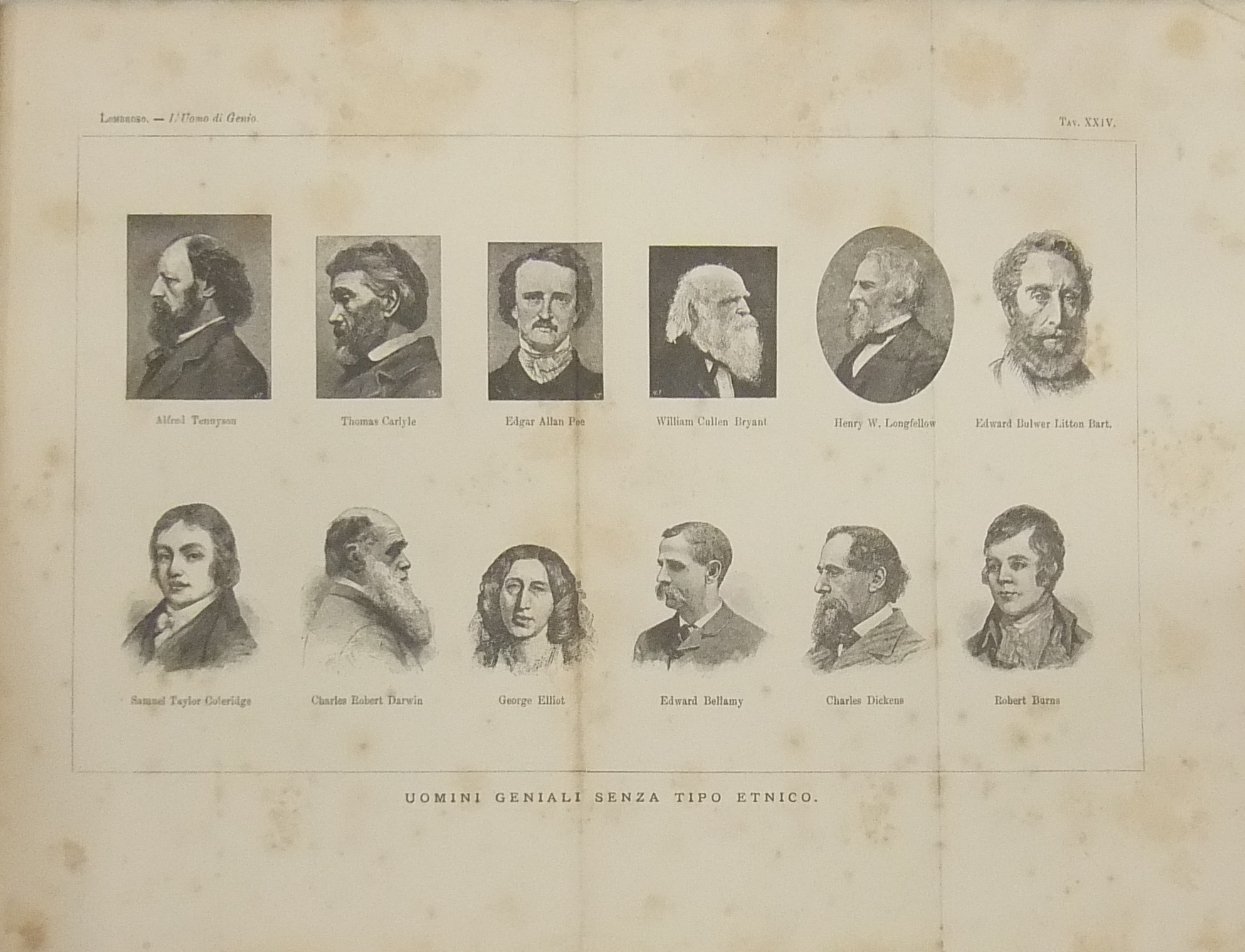 L'uomo di genio in rapporto alla psichiatria alla storia ed all'estetica. Con 26 tavole e 23 figure nel testo