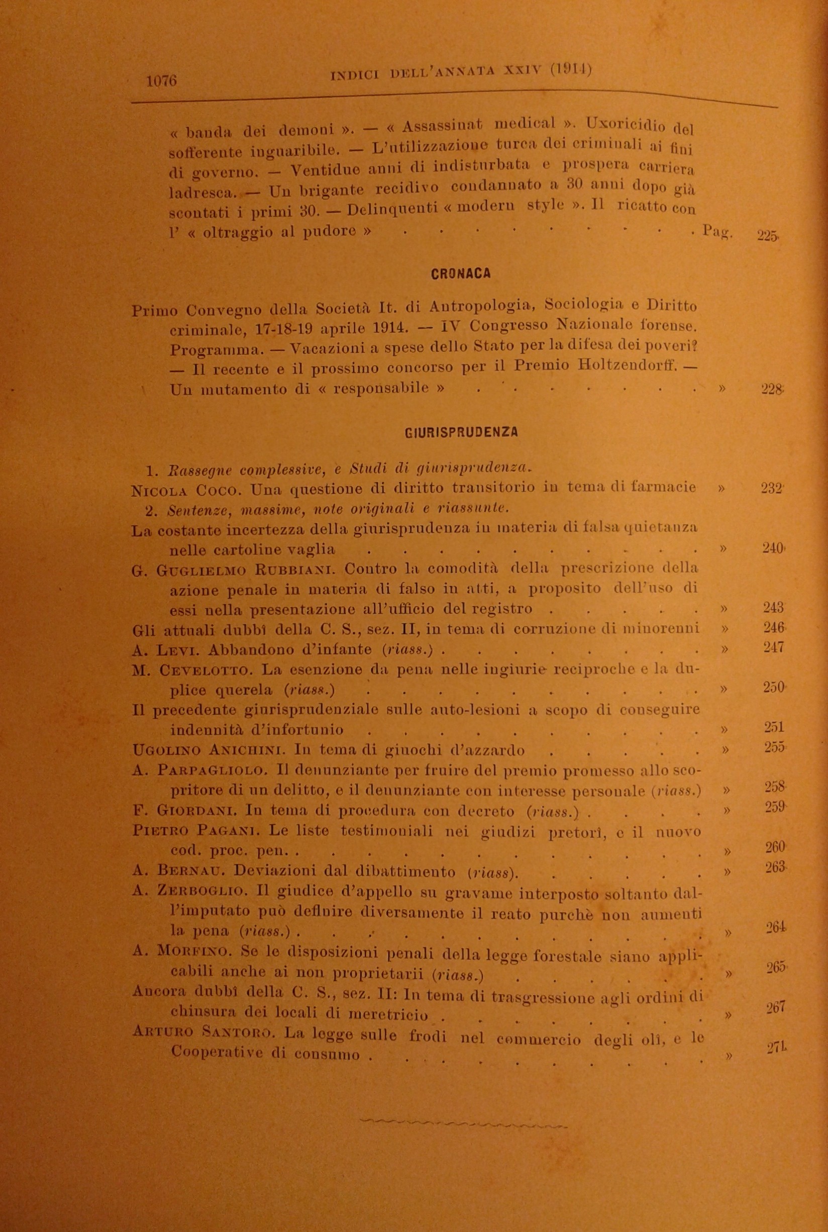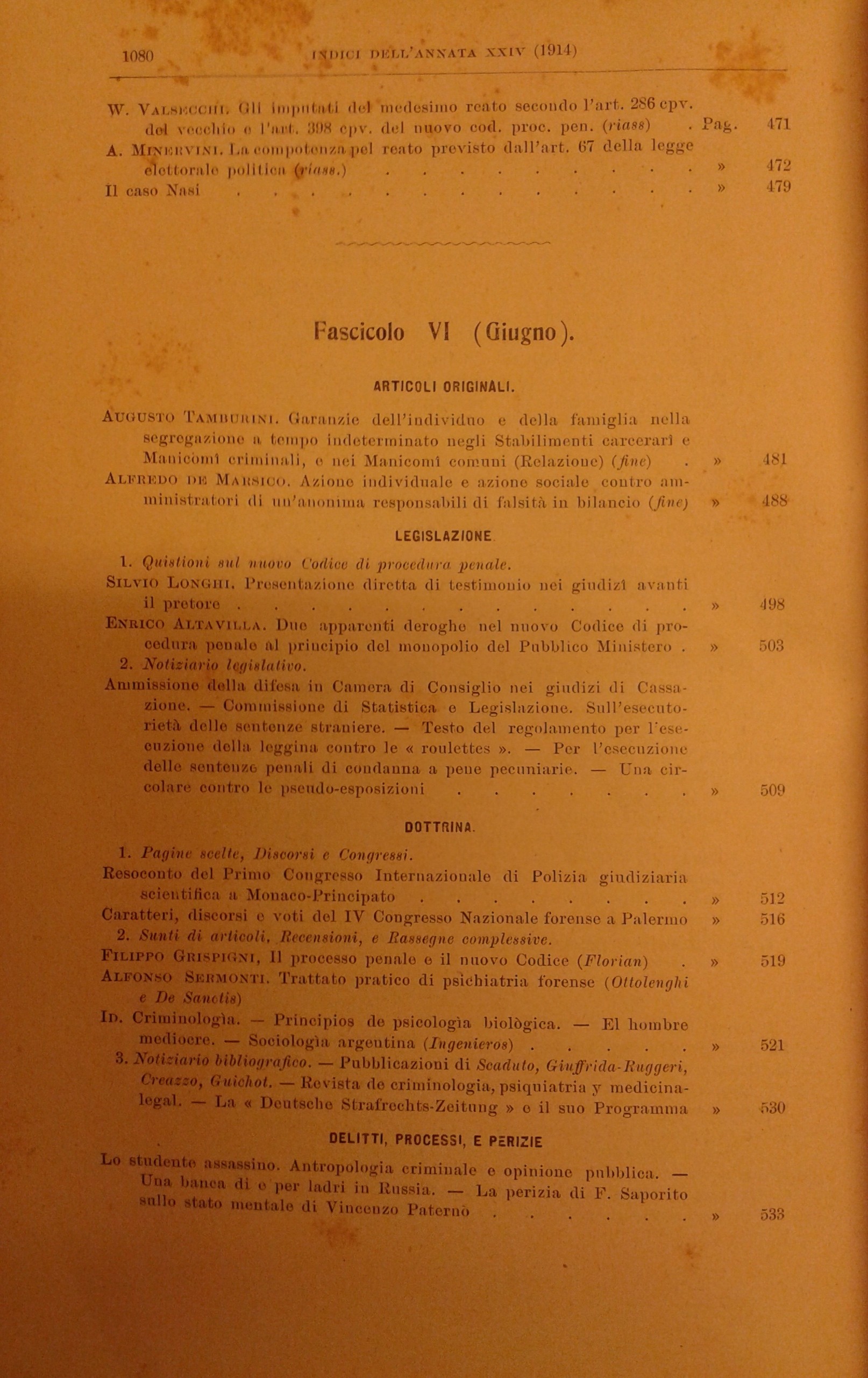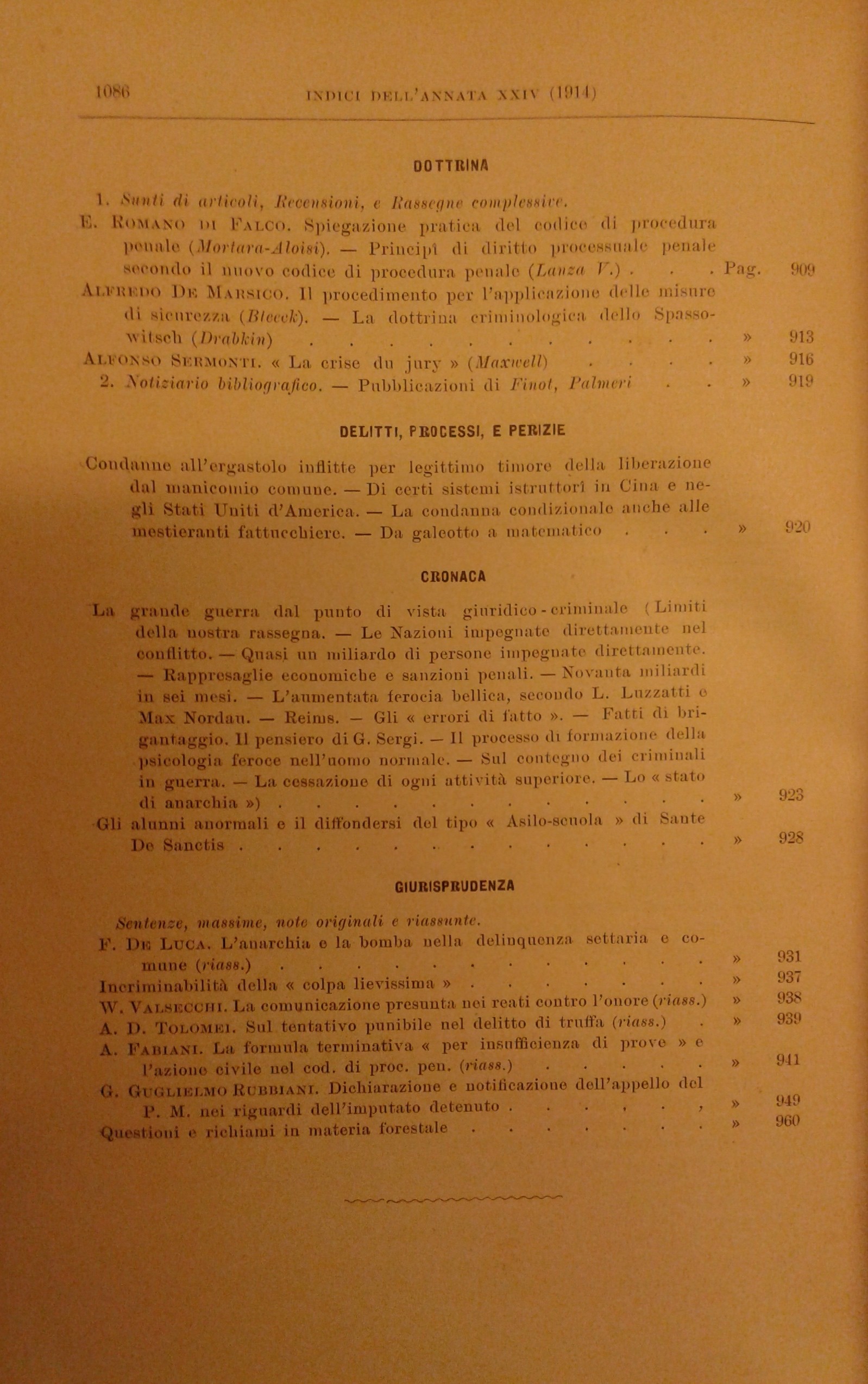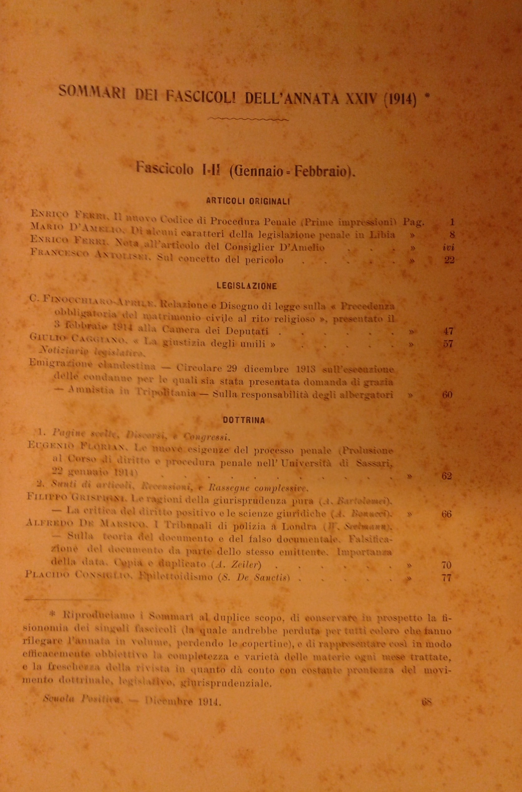 La Scuola Positiva nella dottrina e nella giurisprudenza penale. Annata 1914