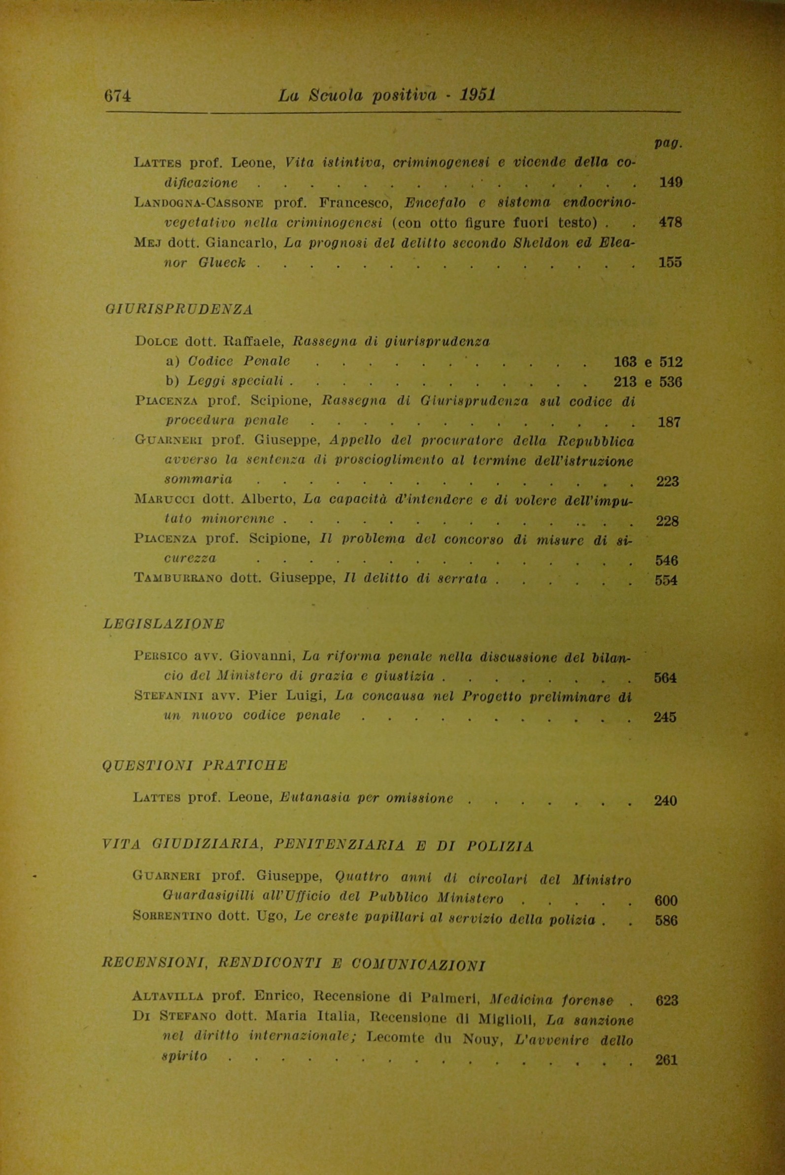 La Scuola Positiva. Rivista di criminologia e diritto criminale. Nuova Serie, Anno V - 1951
