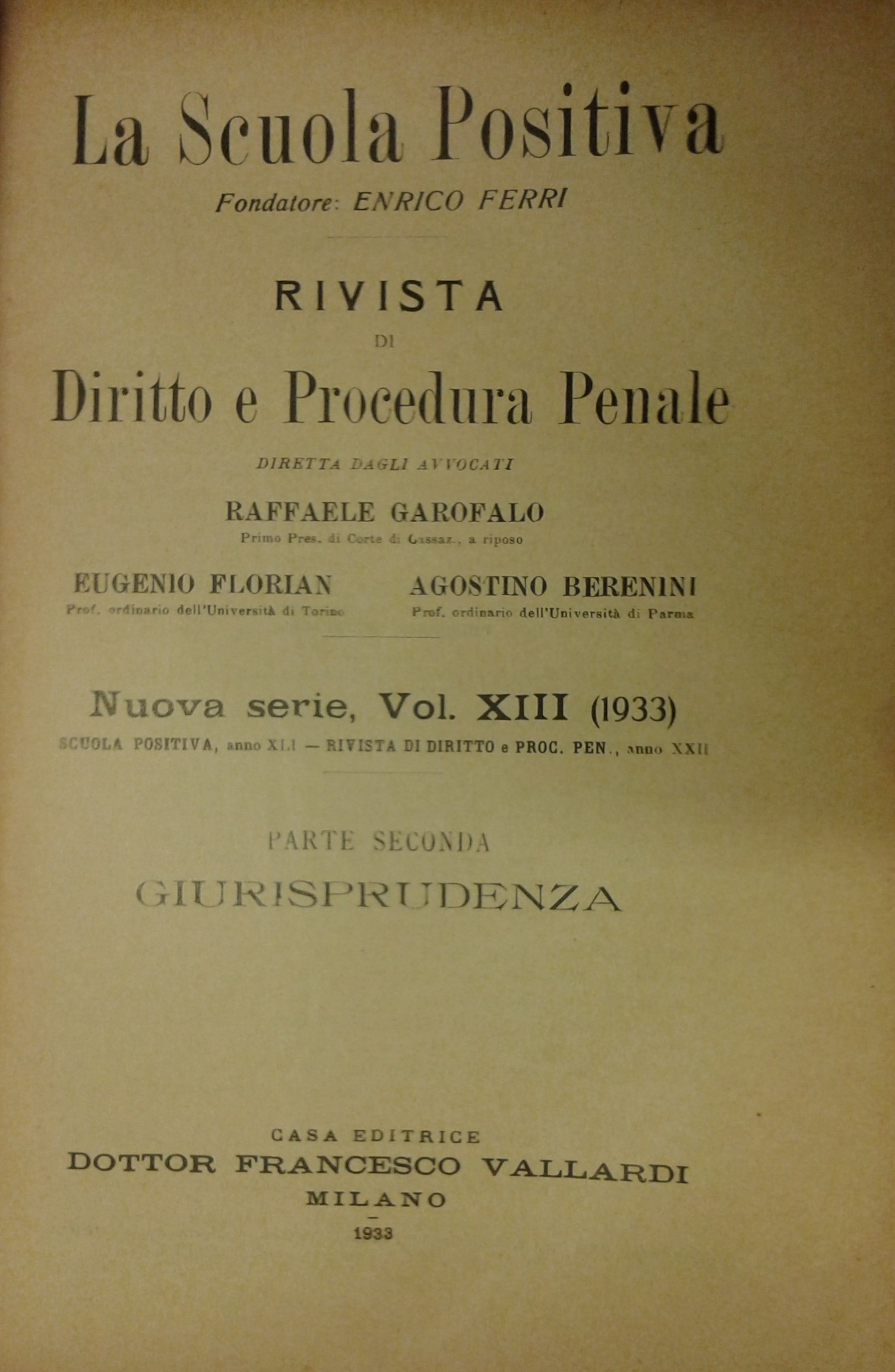 Fondata da Enrico Ferri. Diretta da: Eugenio Florian, A. Berenini, R. Garofalo