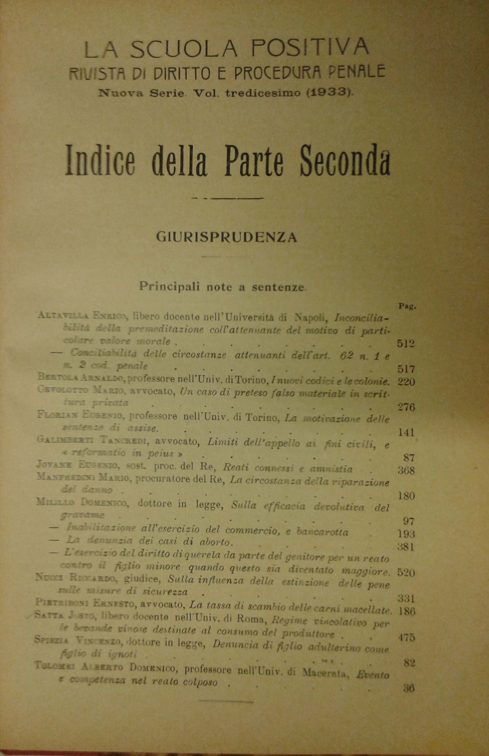 La Scuola Positiva. Rivista di diritto e procedura penale. Nuova serie, Vol. XIII - 1933