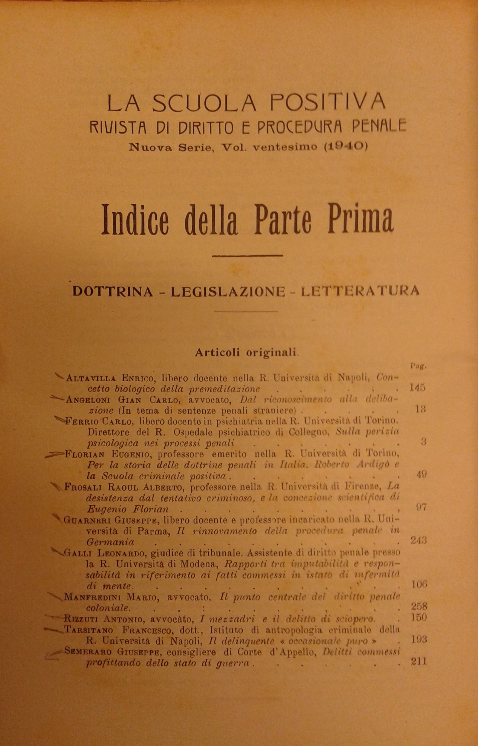 La Scuola Positiva. Rivista di diritto e procedura penale. Nuova serie, Vol. XX - 1940