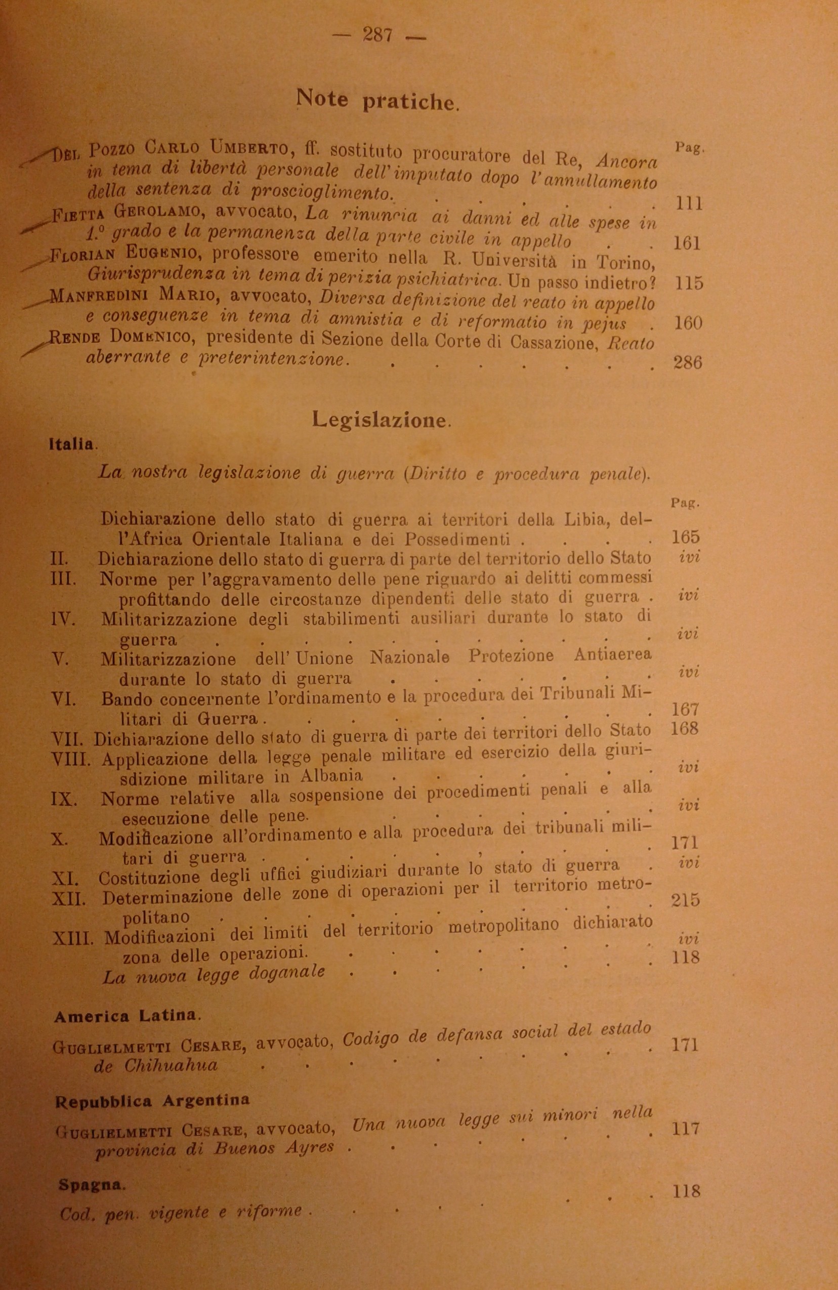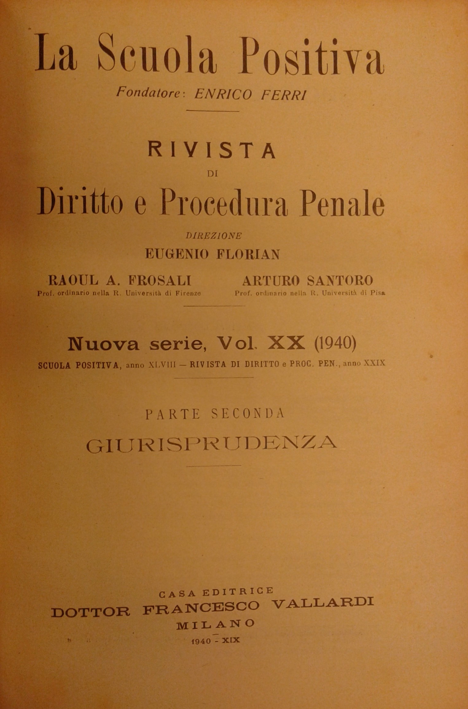 Fondata da Enrico Ferri. Diretta da: Eugenio Florian, Raoul A. Frosali, Arturo Santoro