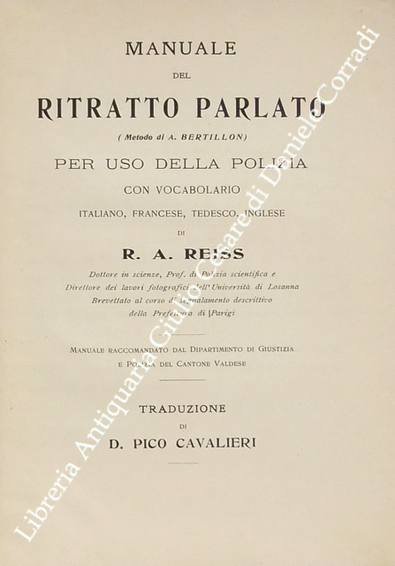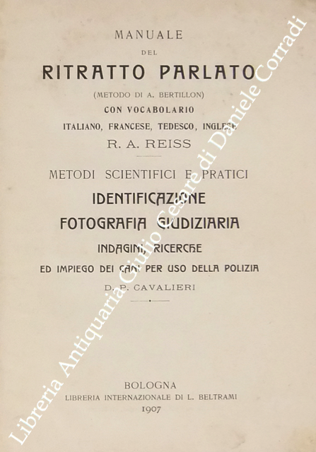 Manuale del ritratto parlato con vocabolario italiano, francese, tedesco, inglese. UNITO A: Metodi scientifici e pratici, identificazione fotografica giudiziaria, indagini, ricerche ed impiego dei cani per uso della polizia