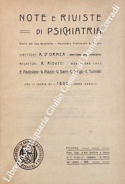 Note e riviste di psichiatria. Diario del San Benedetto - Manicomio provinciale di Pesaro. Vol. II (Serie 3)