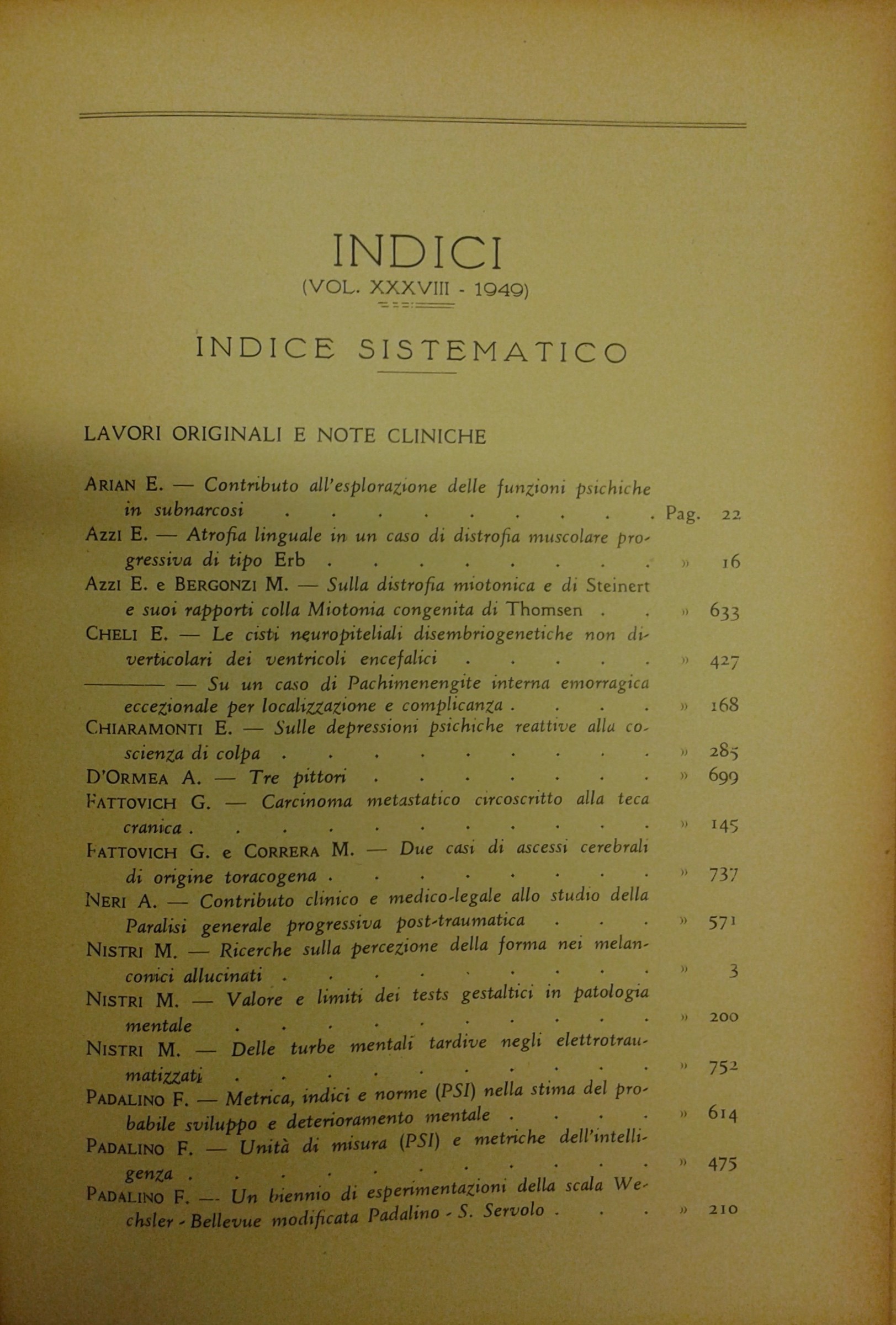 Rassegna di studi psichiatrici. Diretta da Antonio D'Ormea. Vol. XXXVIII - 1949