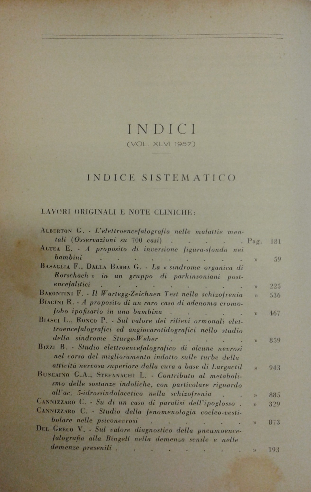Rassegna di studi psichiatrici. Diretta da Antonio D'Ormea. Vol. XLVI - 1957